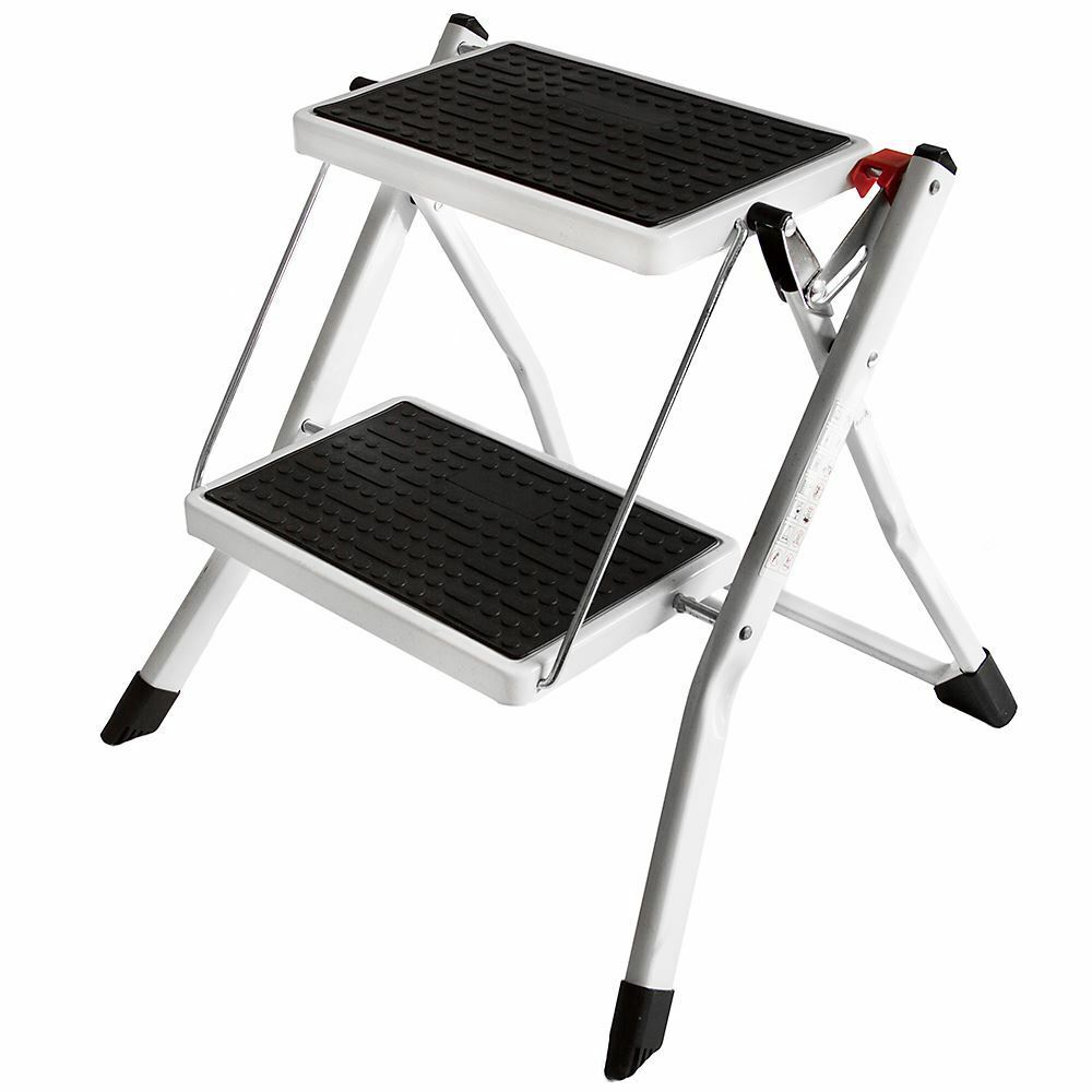 2 Step Ladder Stool Safety Anti Slip Rubber Mat Tread Steel Folding Frame DIY