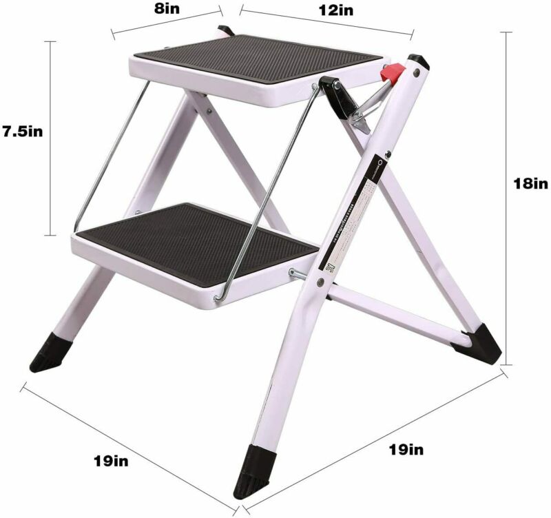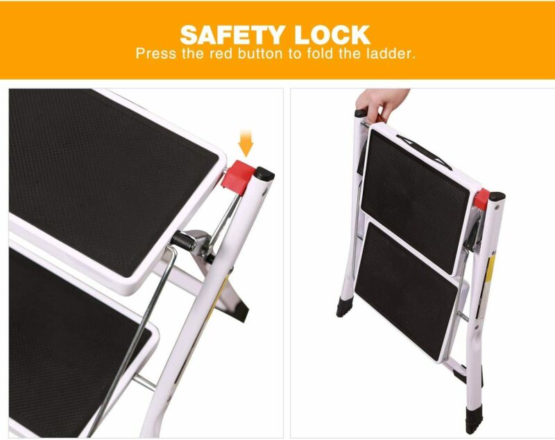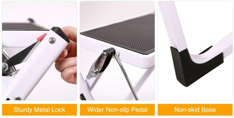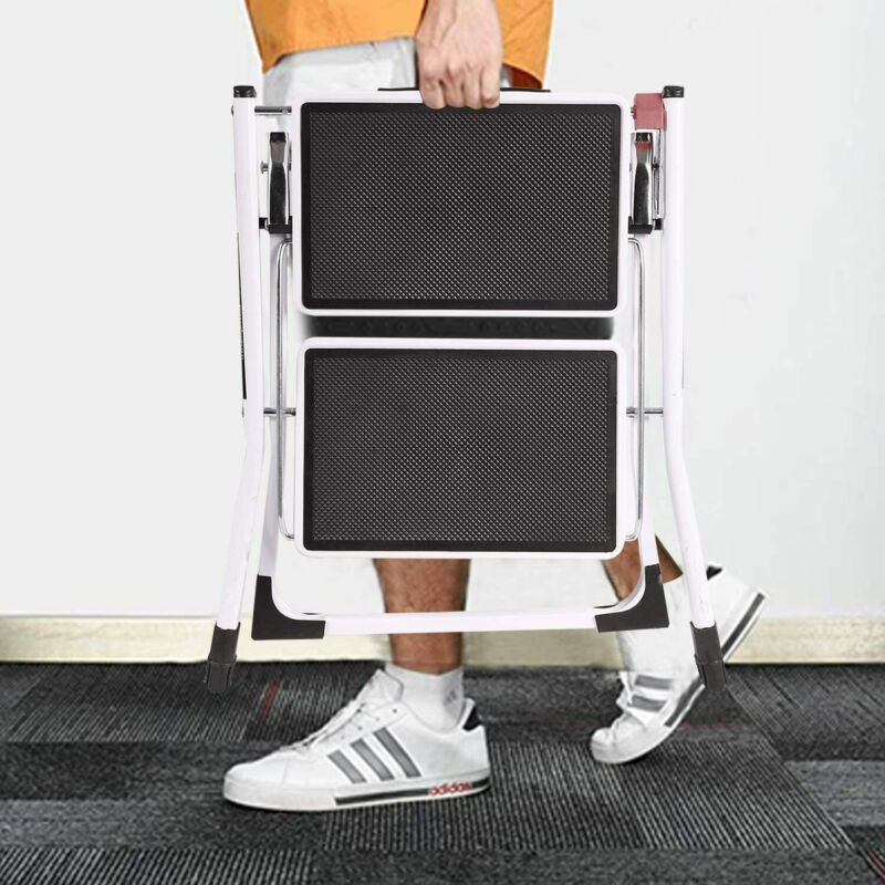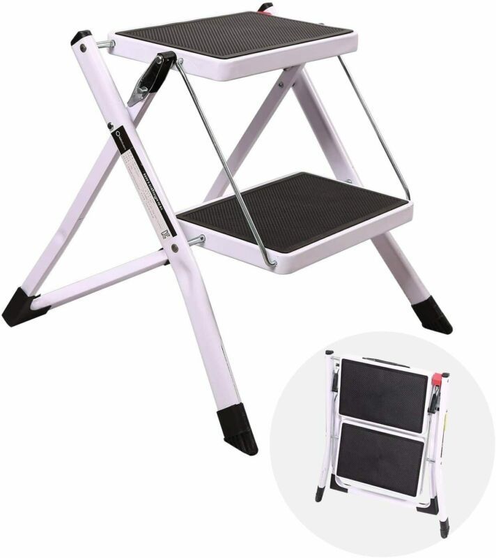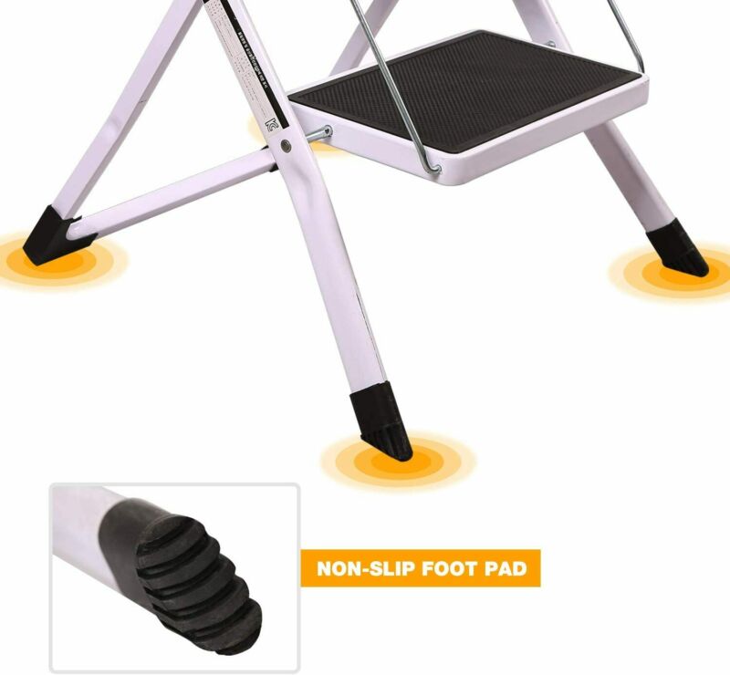 2 Step Ladder Stool Safety Anti Slip Rubber Mat Tread Steel Folding Frame DIY