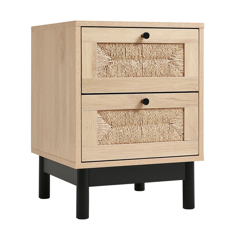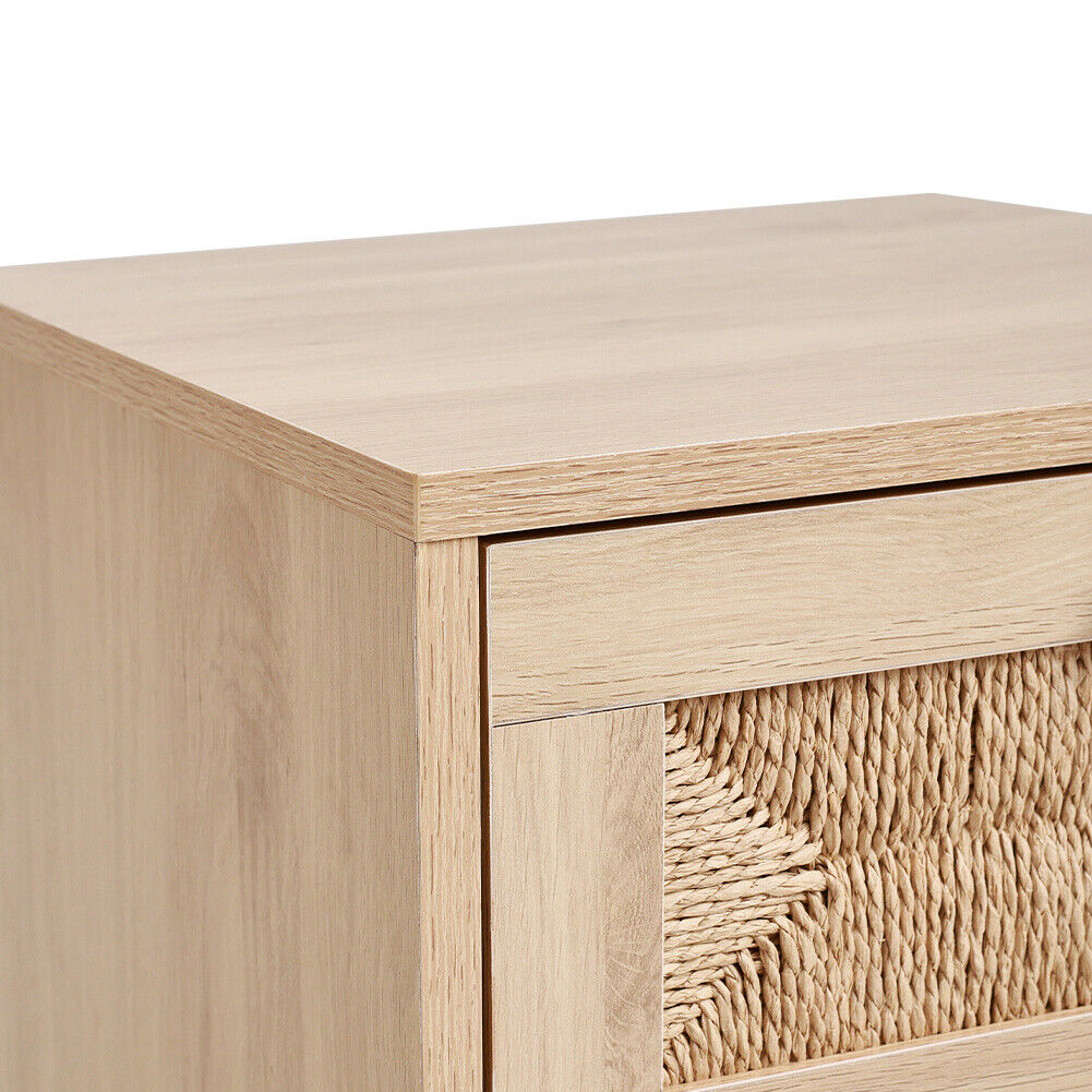 2 Straw Woven Drawer Bedside Table Chest of Drawers Storage Cabinet Furniture