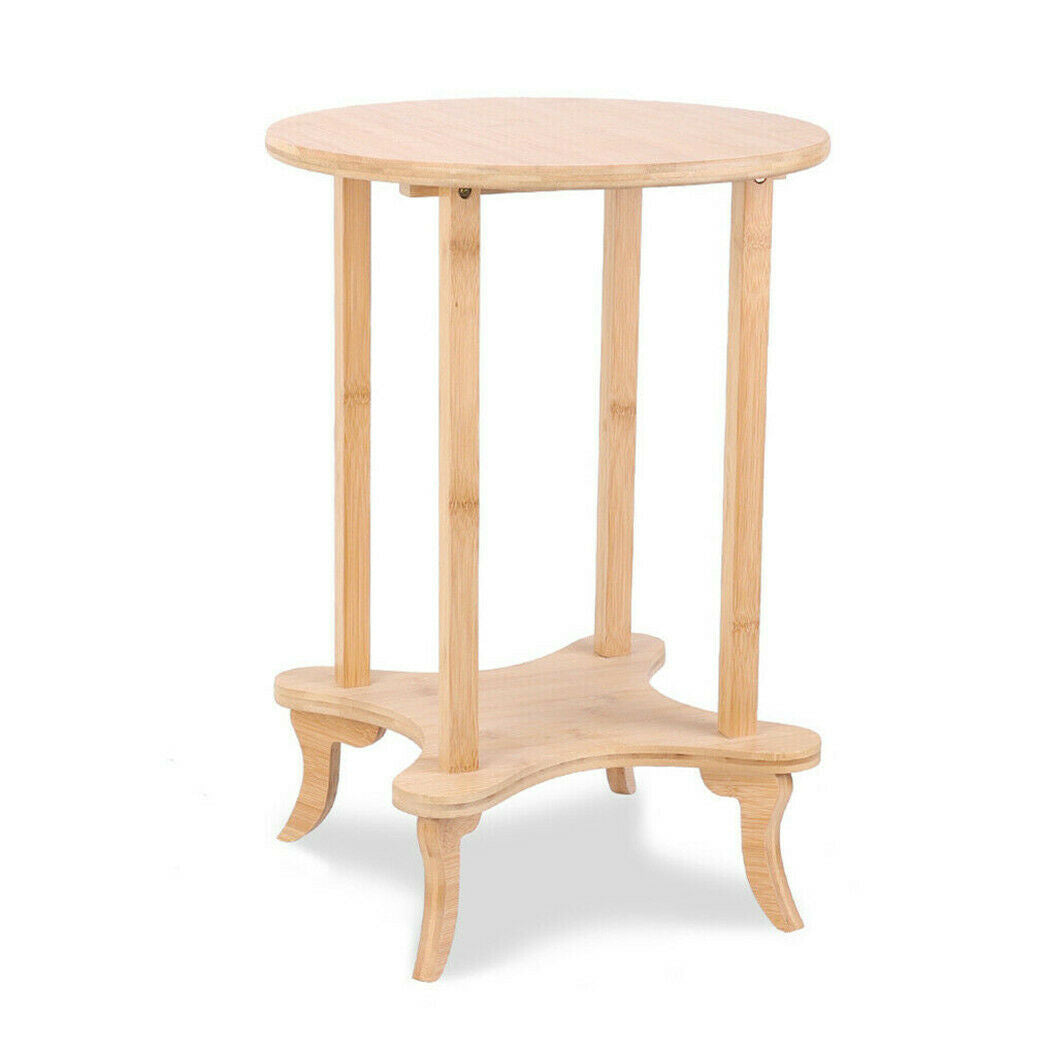 2 Tier 4-Leg Coffee Table Bamboo Side Bedside Table Desk 55cm Tall 40cm Round