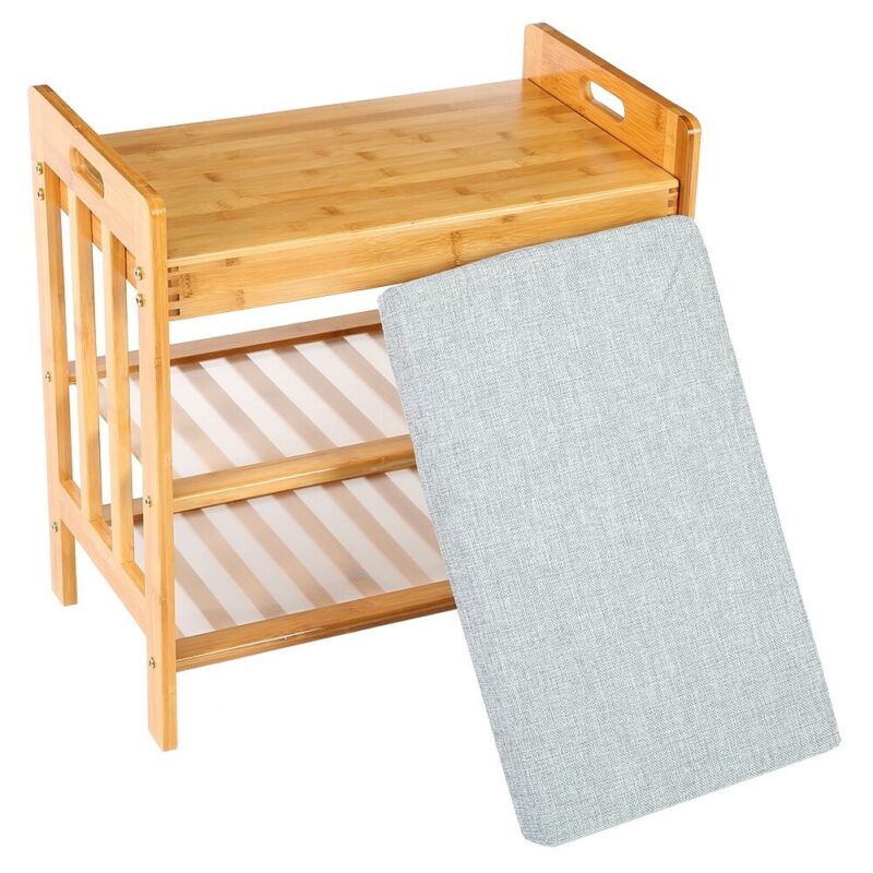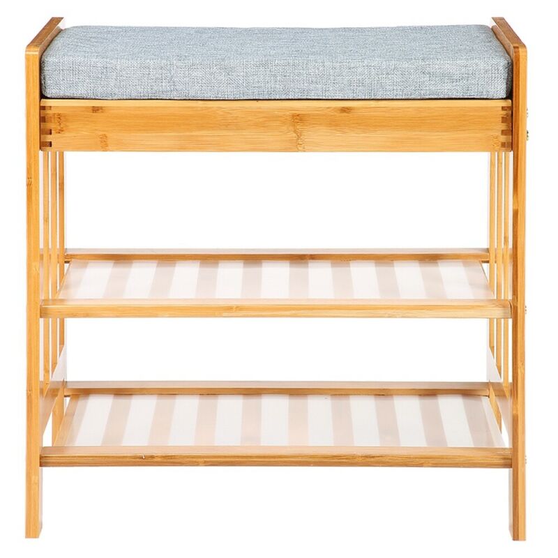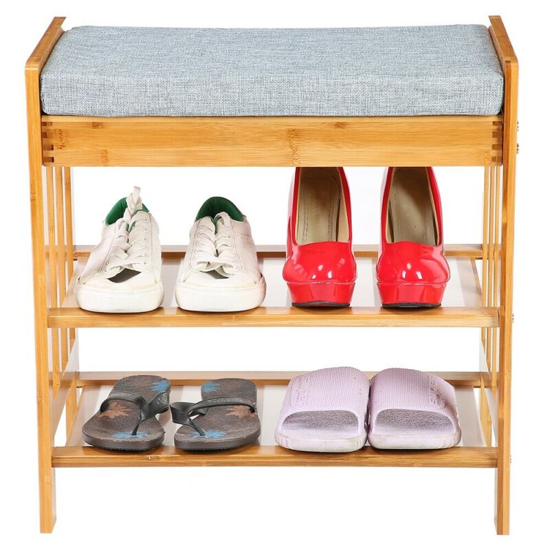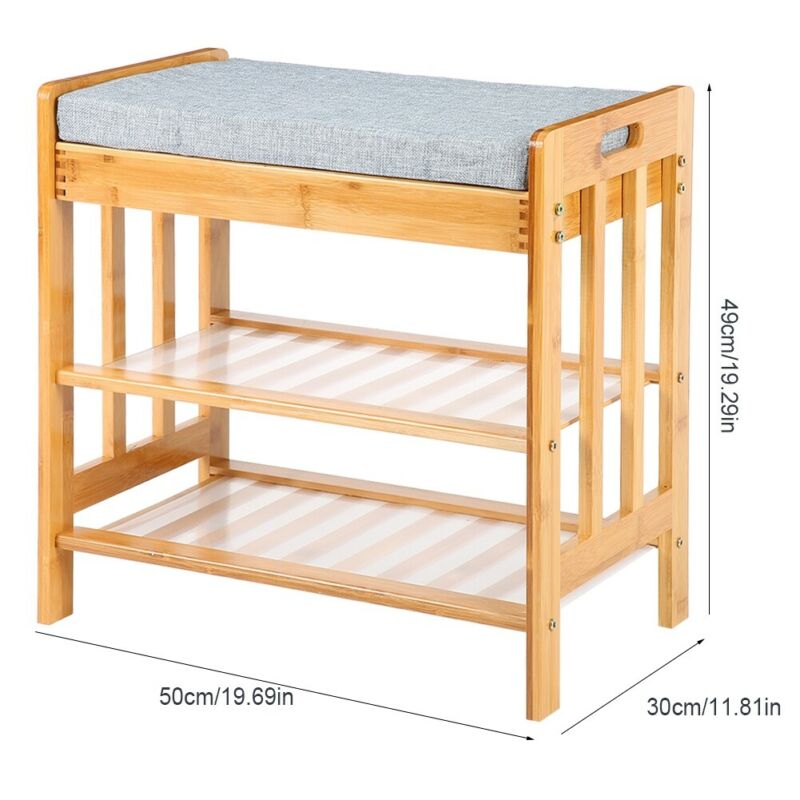 2 Tier 50cm Wood Shoe Bench Rack Storage Organizer for Hallway Living Room