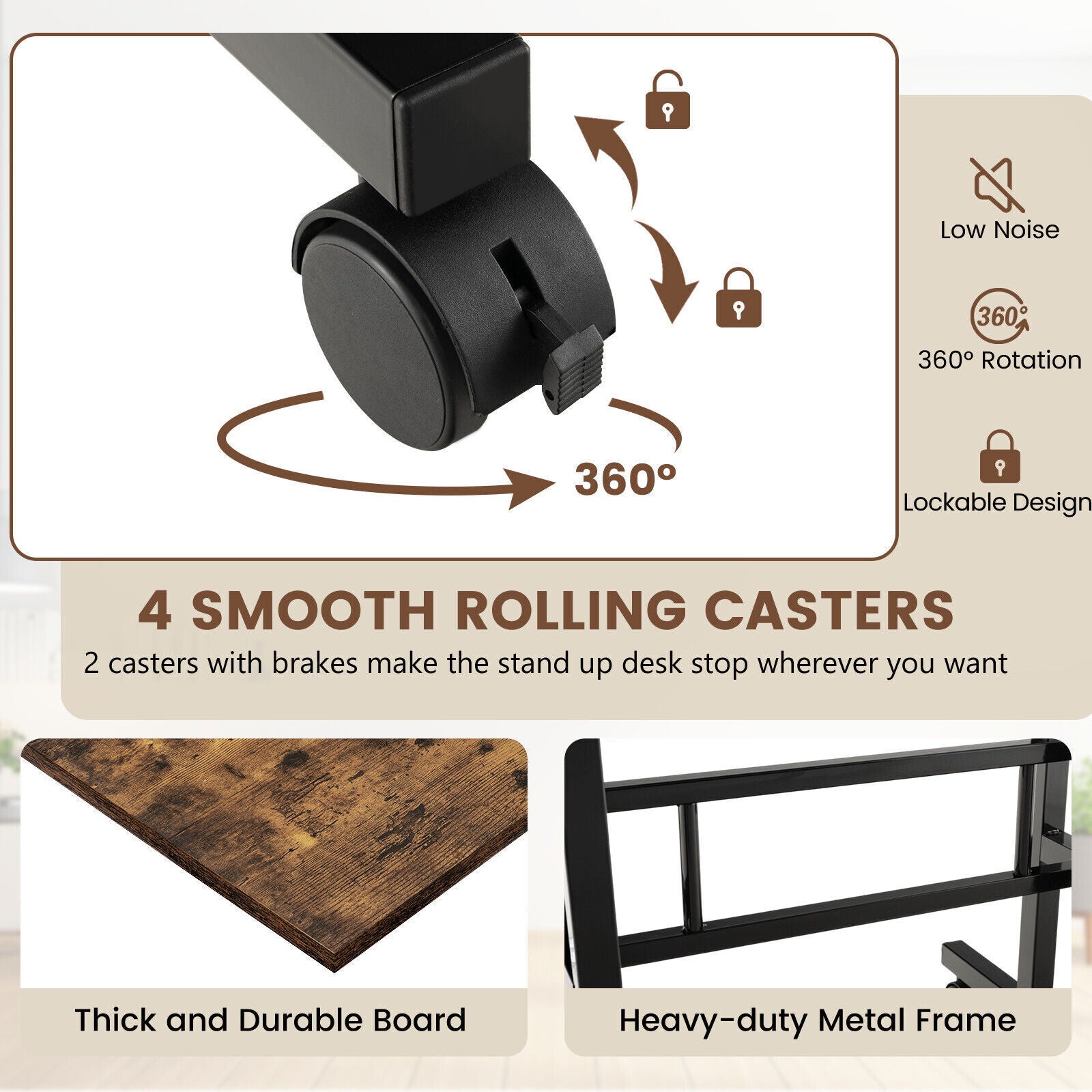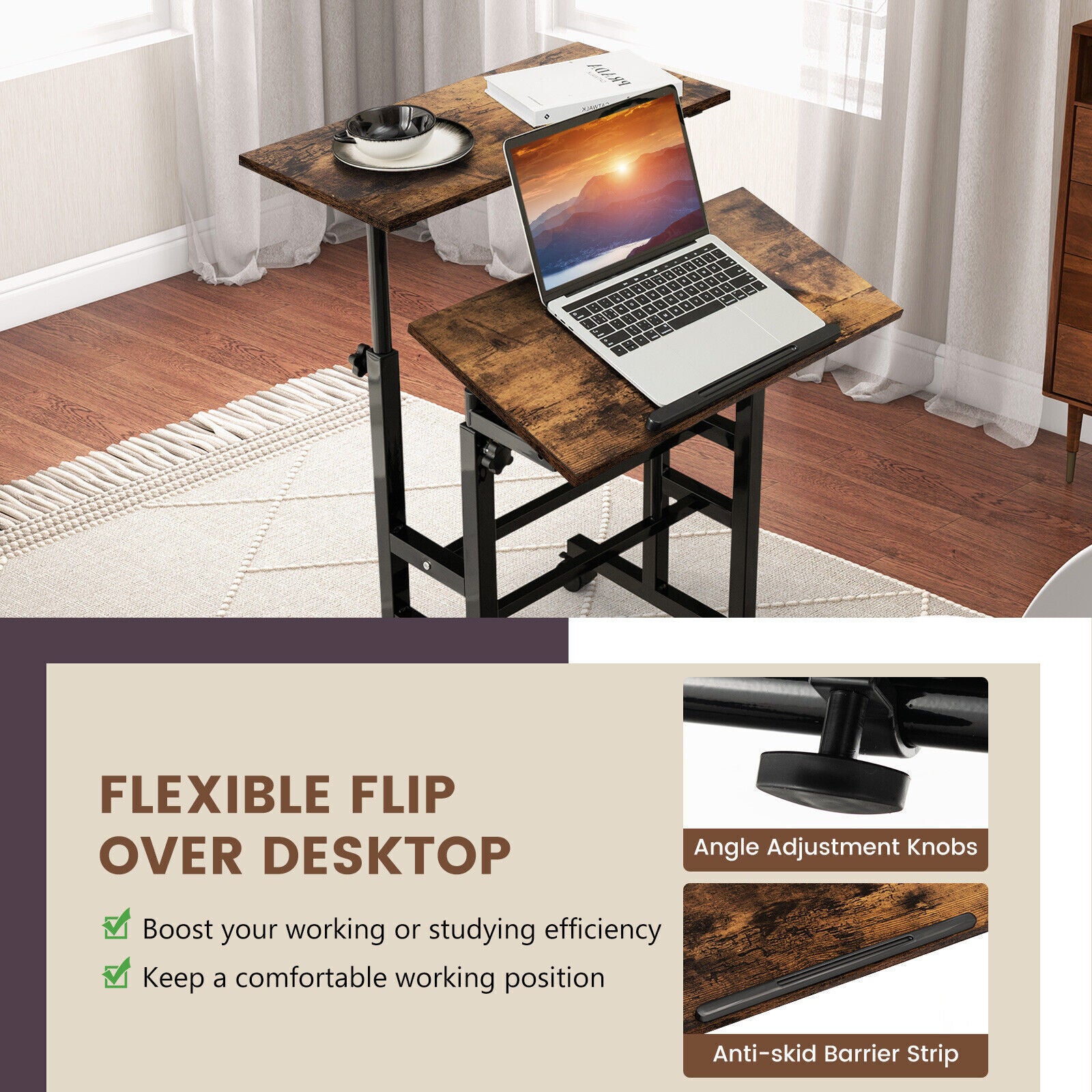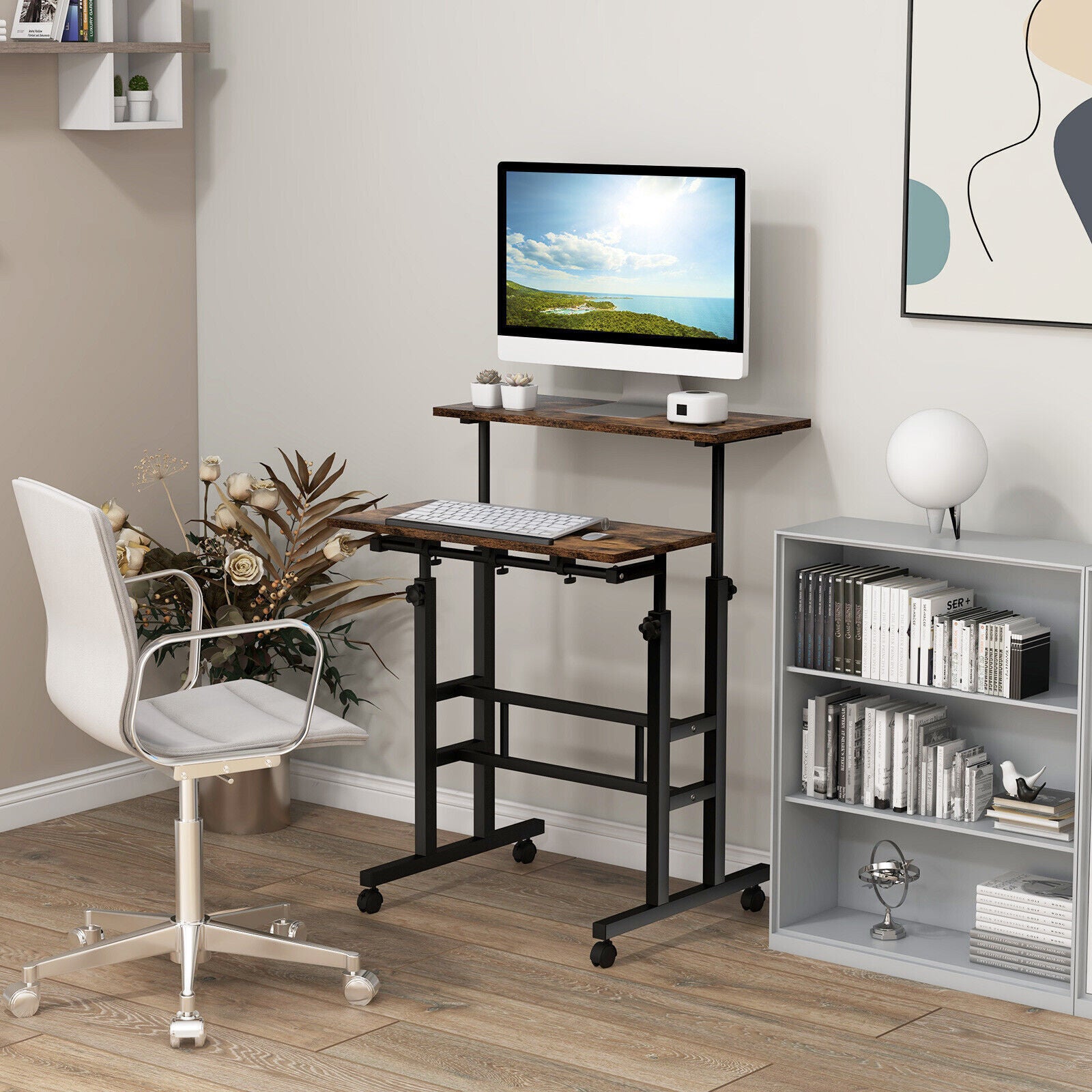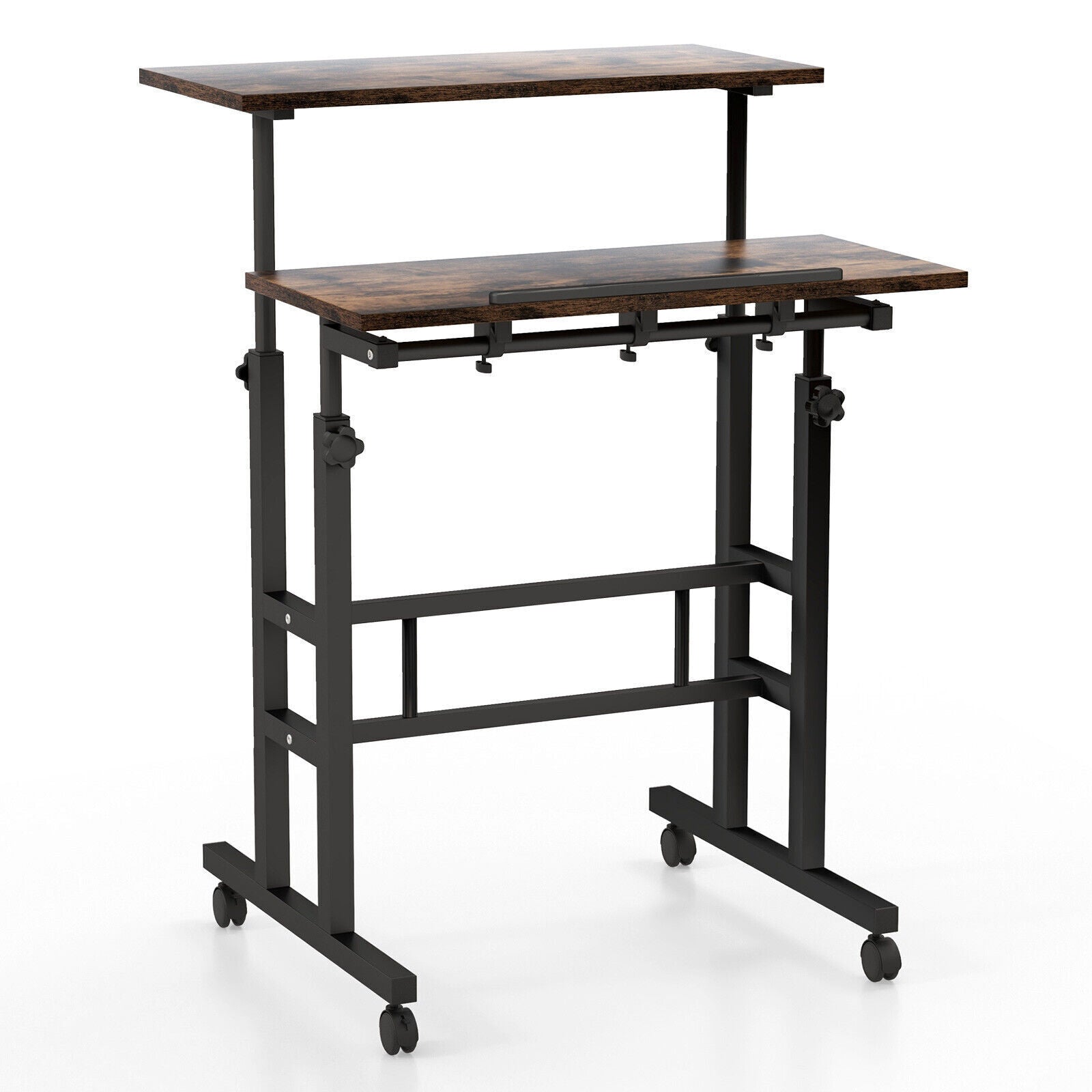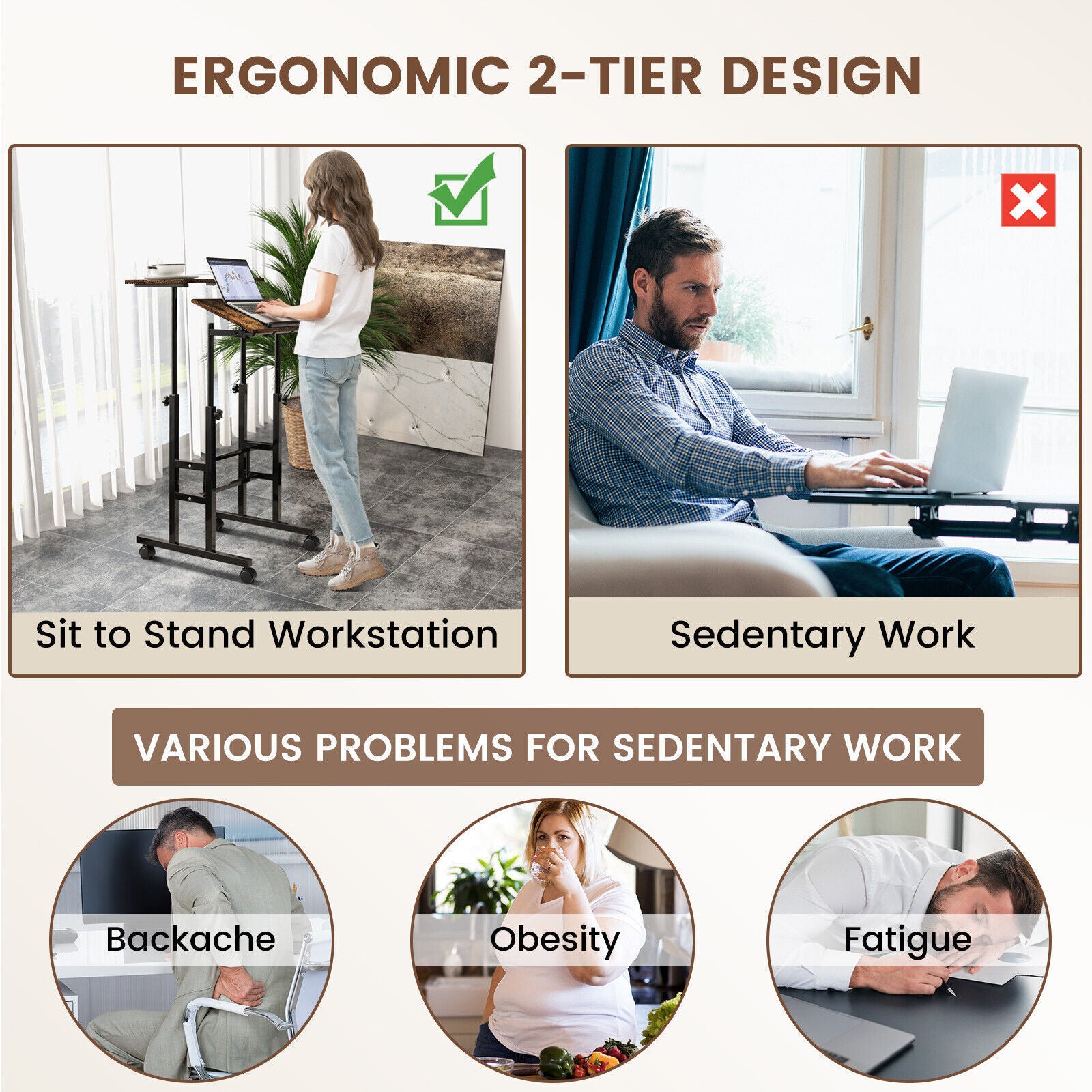 2-Tier Adjustable Standing Desk Mobile Sit Stand Desk Office Laptop Cart