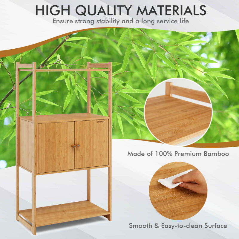 2 Tier Bamboo Bathroom Storage Cabinet Freestanding Cupboard Display Rack 2-Door
