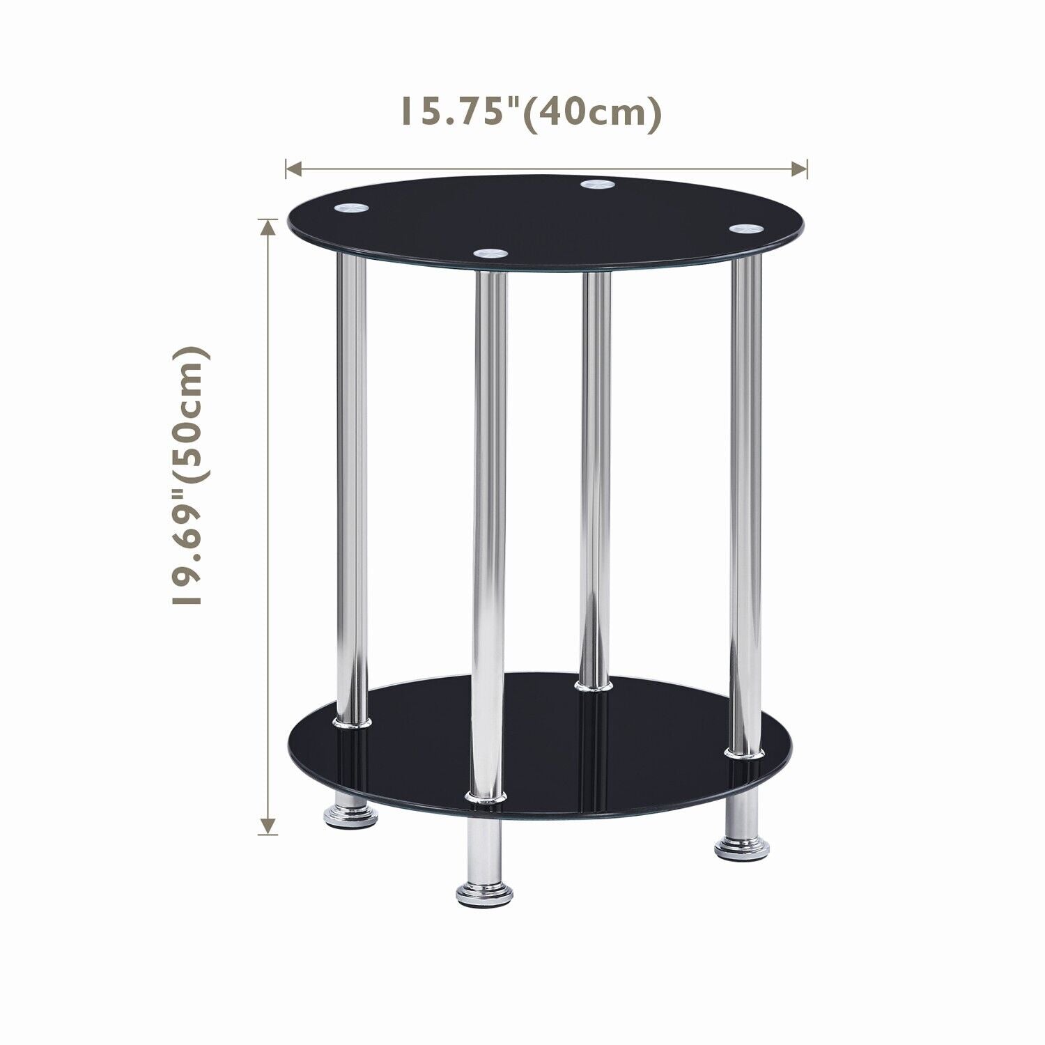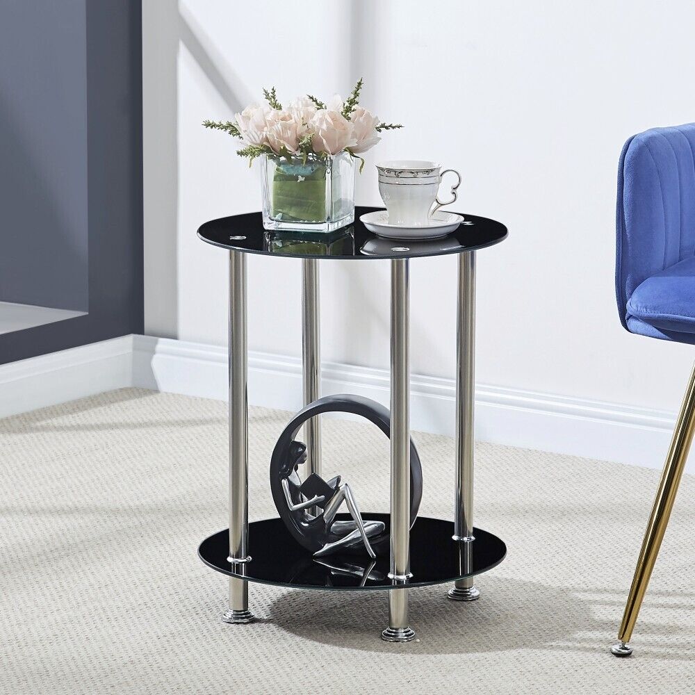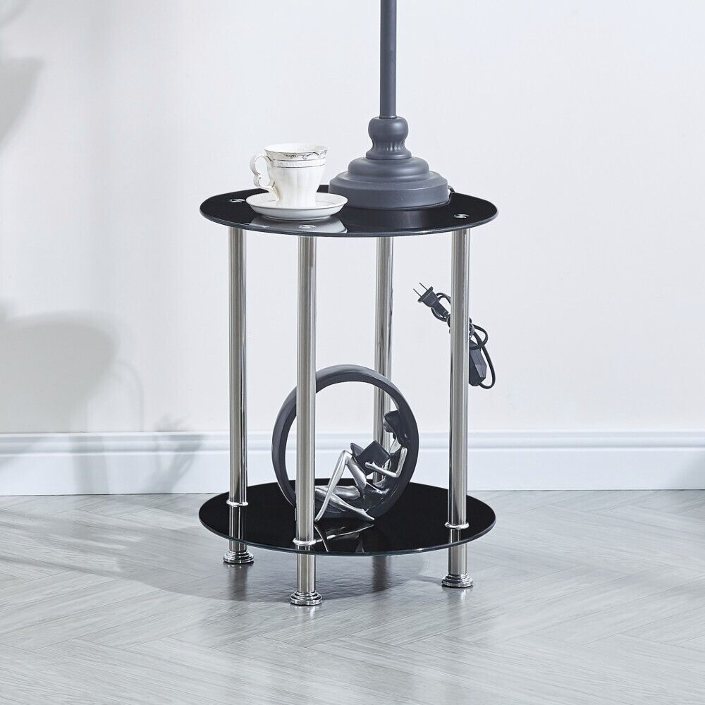 2 Tier Black Tempered Glass Side End Table Storage Shelf Stainless Steel Tubes