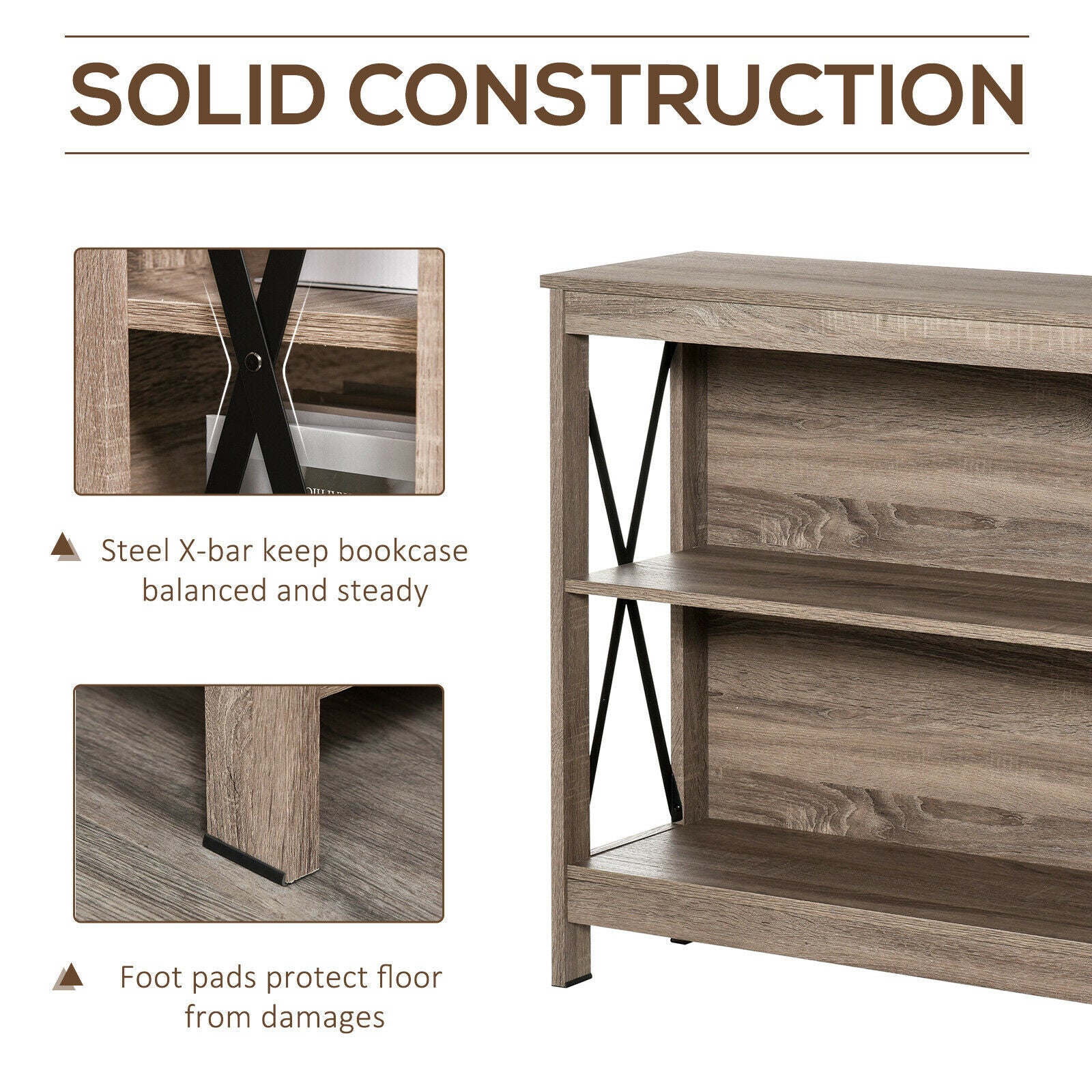 2-Tier Bookcase Display Shelf Unit w/ Steel Bar for Living Room Bedroom Office