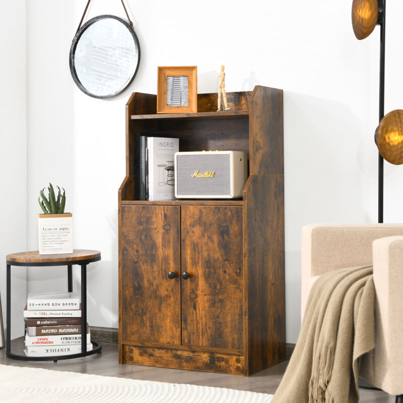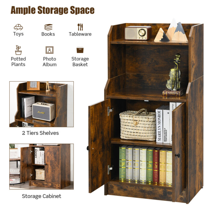 2 Tier Bookshelf Industrial Storage Cabinet Display Shelving Bookcase w/2 Doors