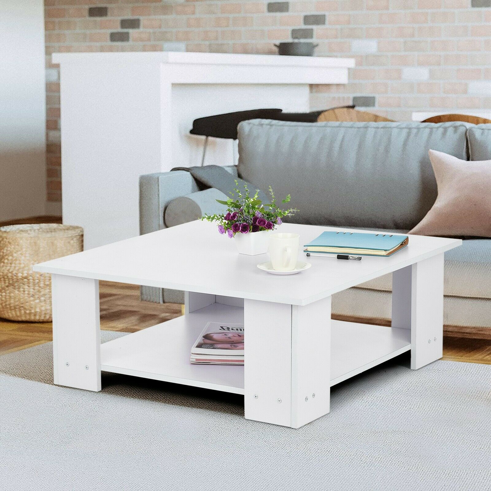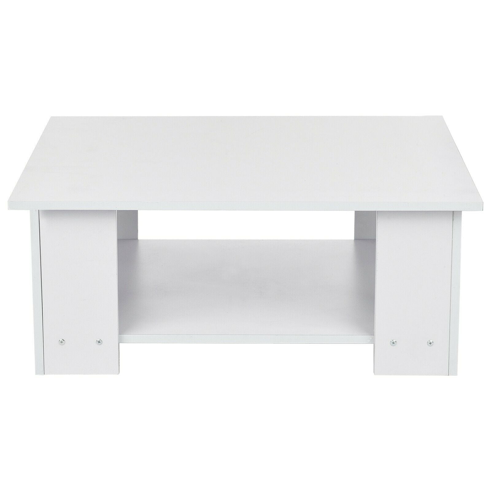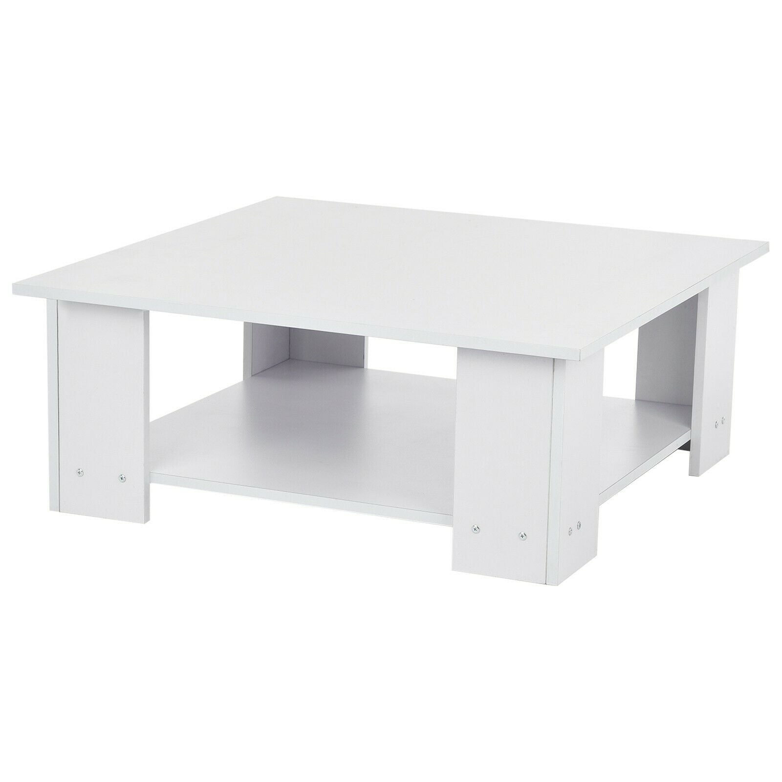 2 Tier Coffee End/Side Table Modern White Design with Storage Shelf Living Room