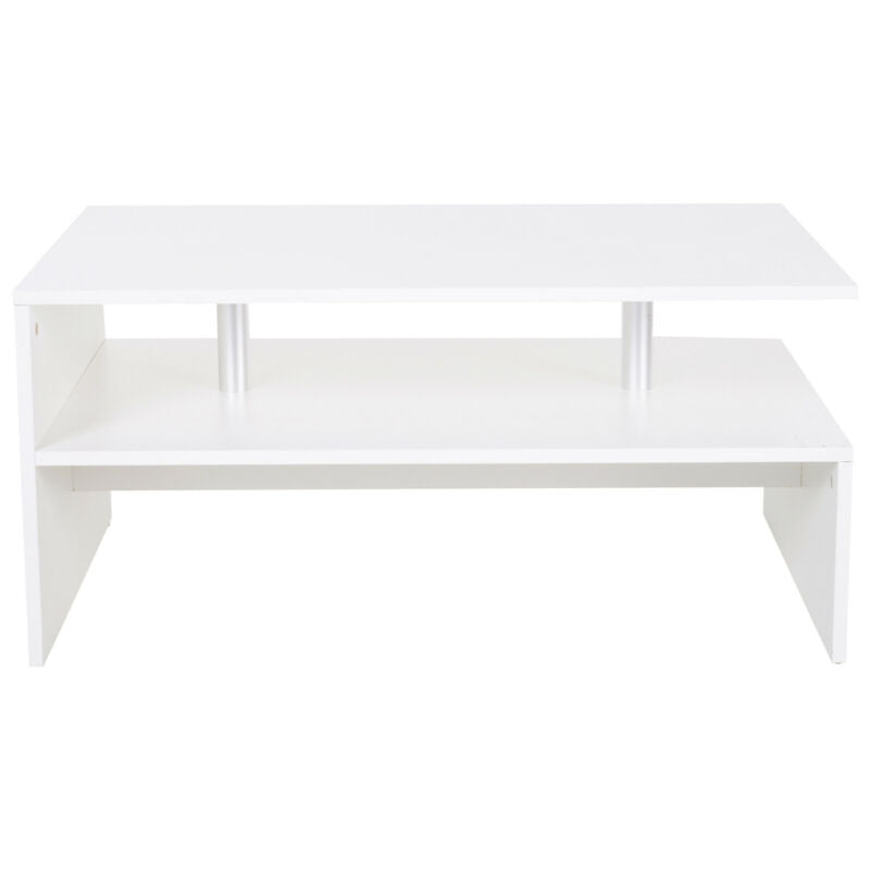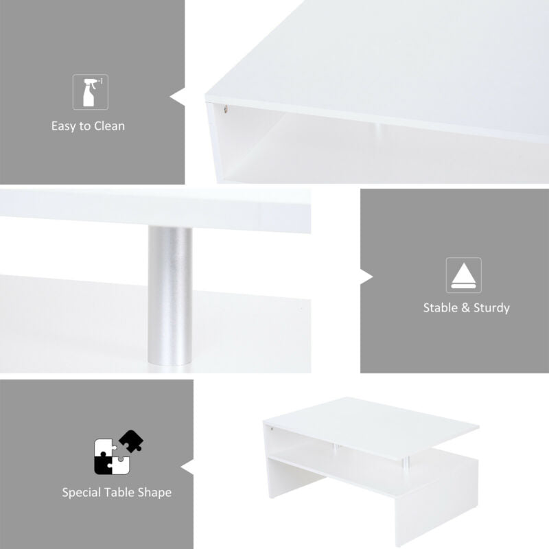 2 Tier Coffee Table End/Side Table Modern Design w/Open Shelf Living Room White