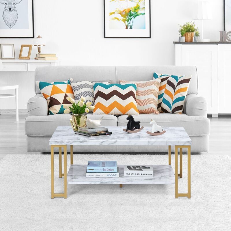 2-Tier Coffee Table Faux Marble Accent Rectangular Cocktail Table Tea Table