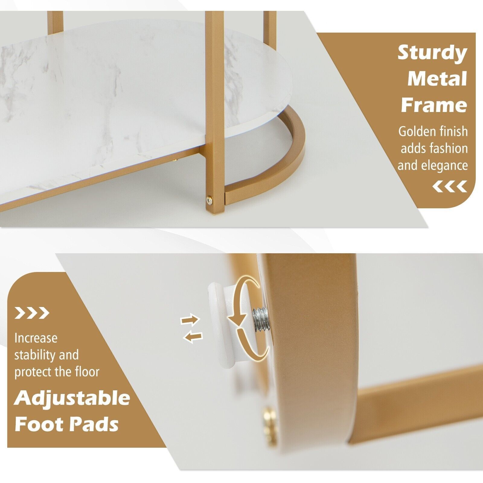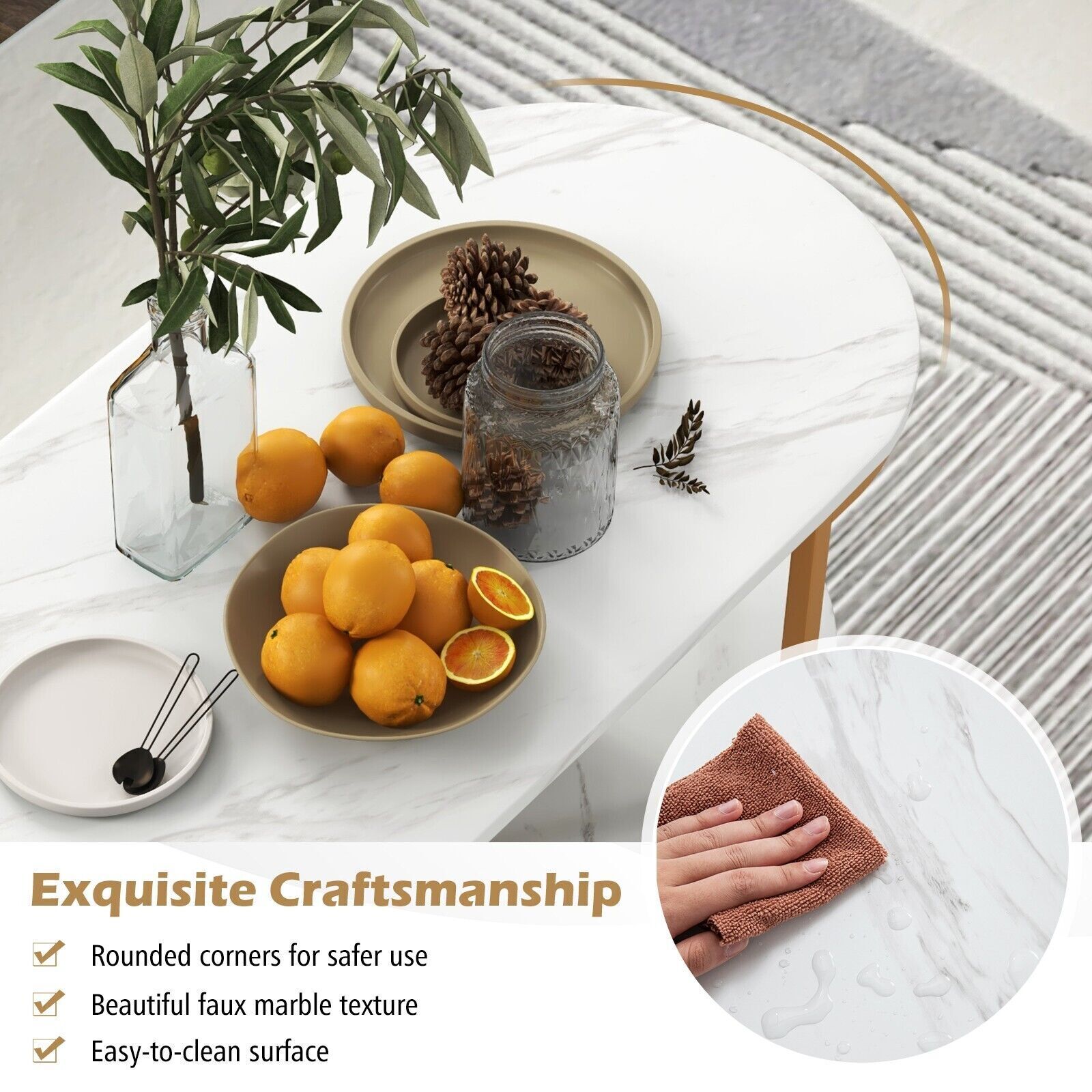 2-Tier Coffee Table Faux Marble Cocktail Table Modern Center Table Accent Table