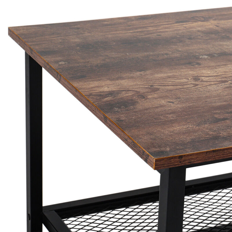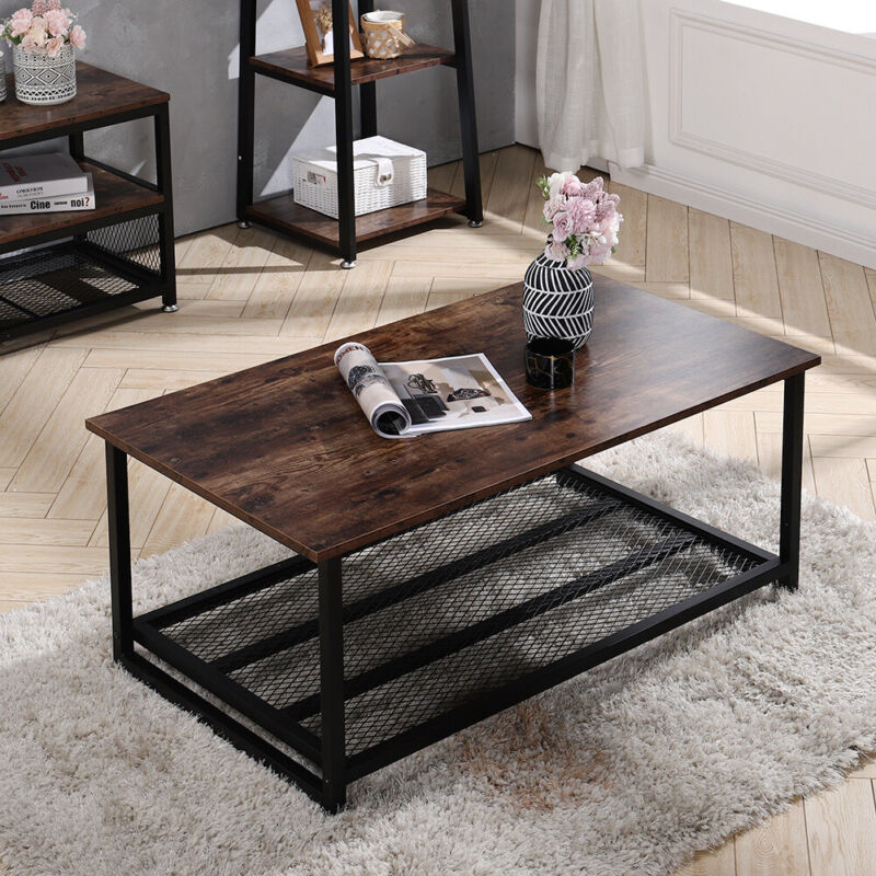 2 Tier Coffee Table Industrial Wooden Rectangle Living Room Table Metal Shelf