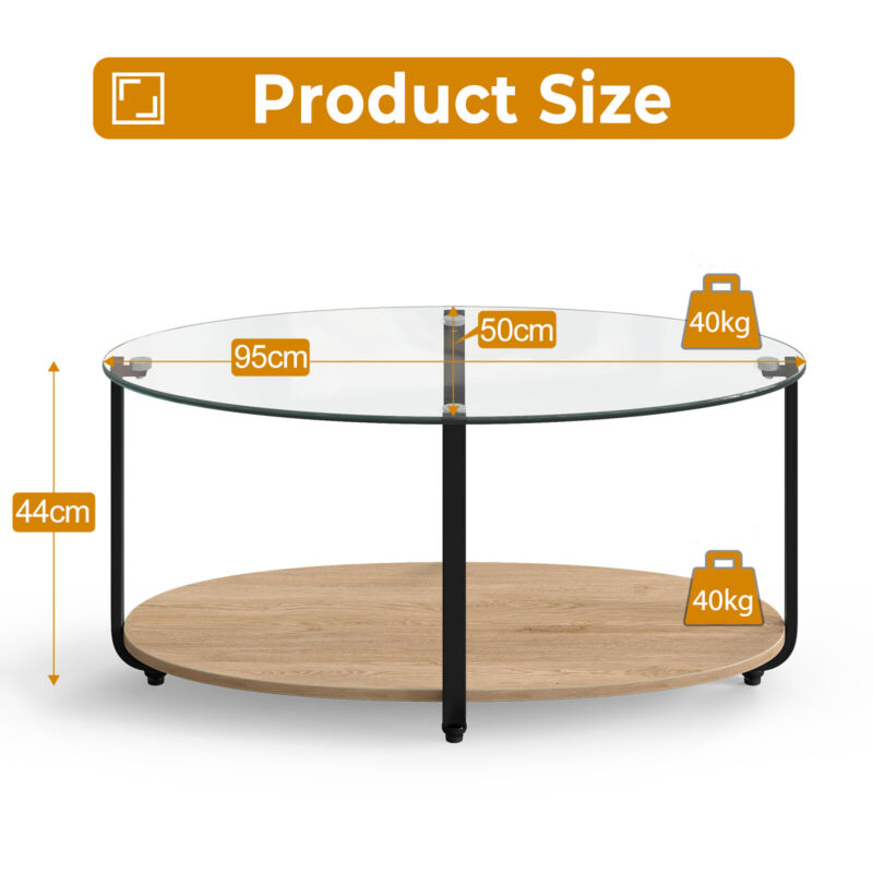 2-Tier Coffee Table Oval Modern Side Table W/ Tempered Glass Tabletop
