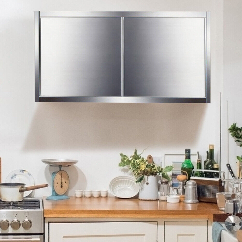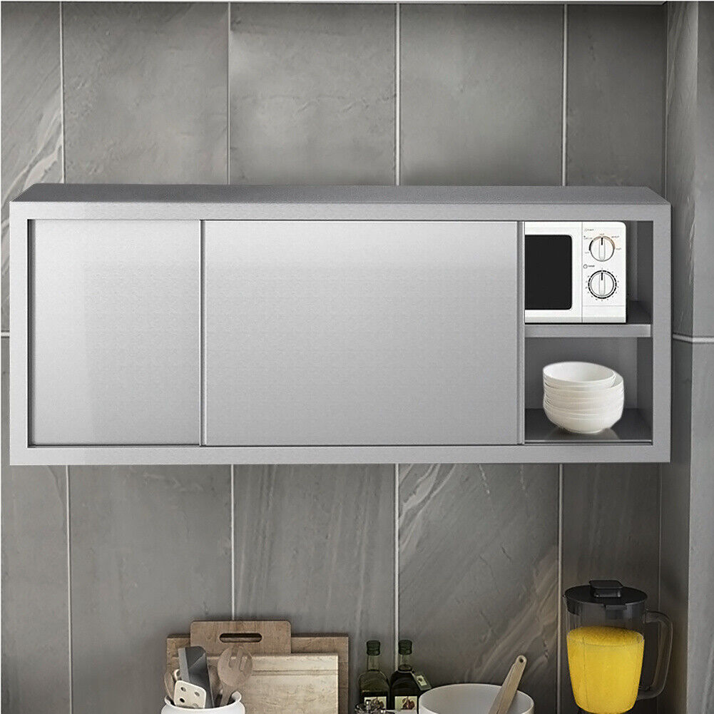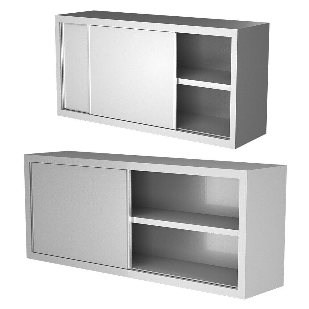 2 Tier Commercial Kitchen Stainless Steel Sliding Doors Cabinet Wall Cupboard UK