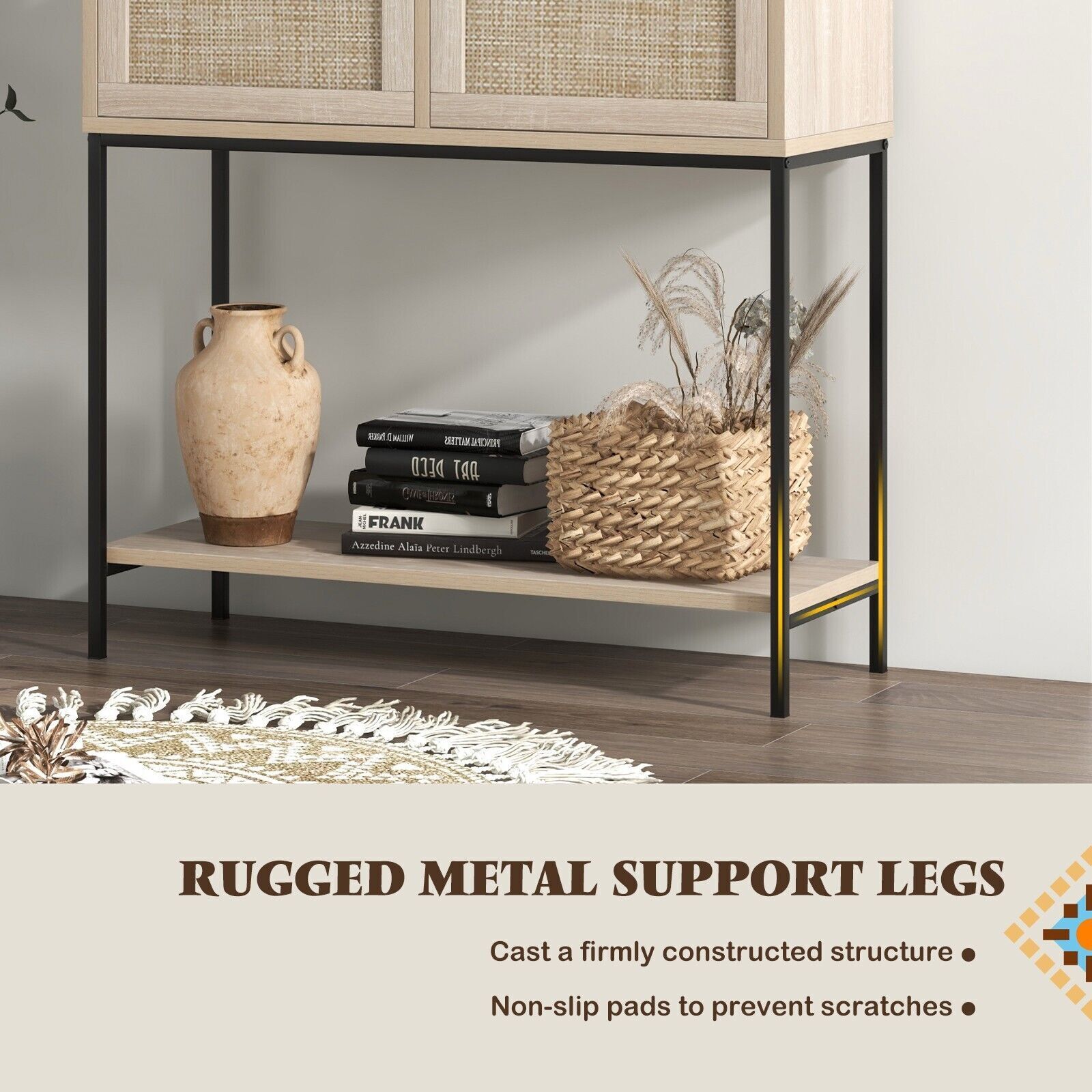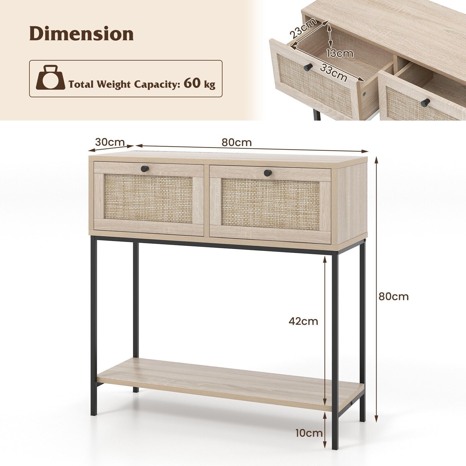 2-Tier Console Table Boho Style Foyer Accent Table Sofa Side Table w/2 Drawers