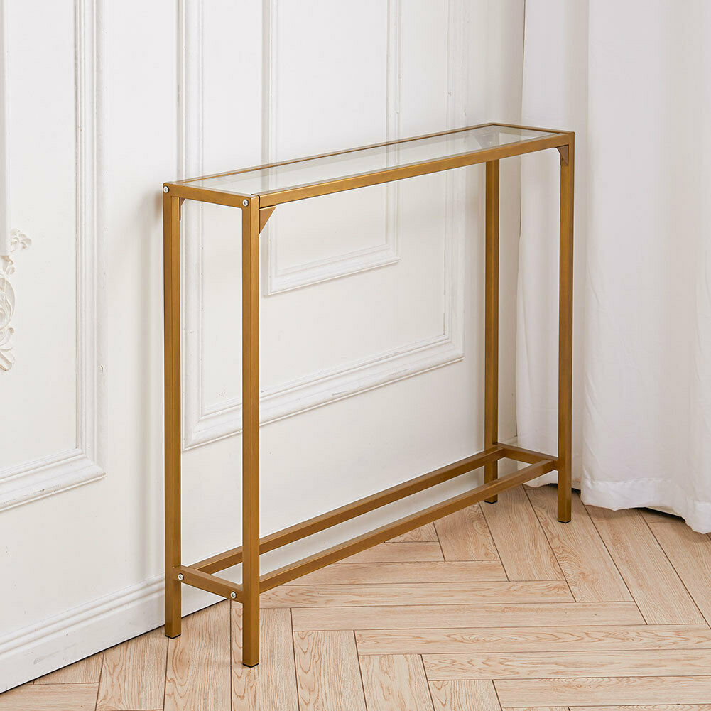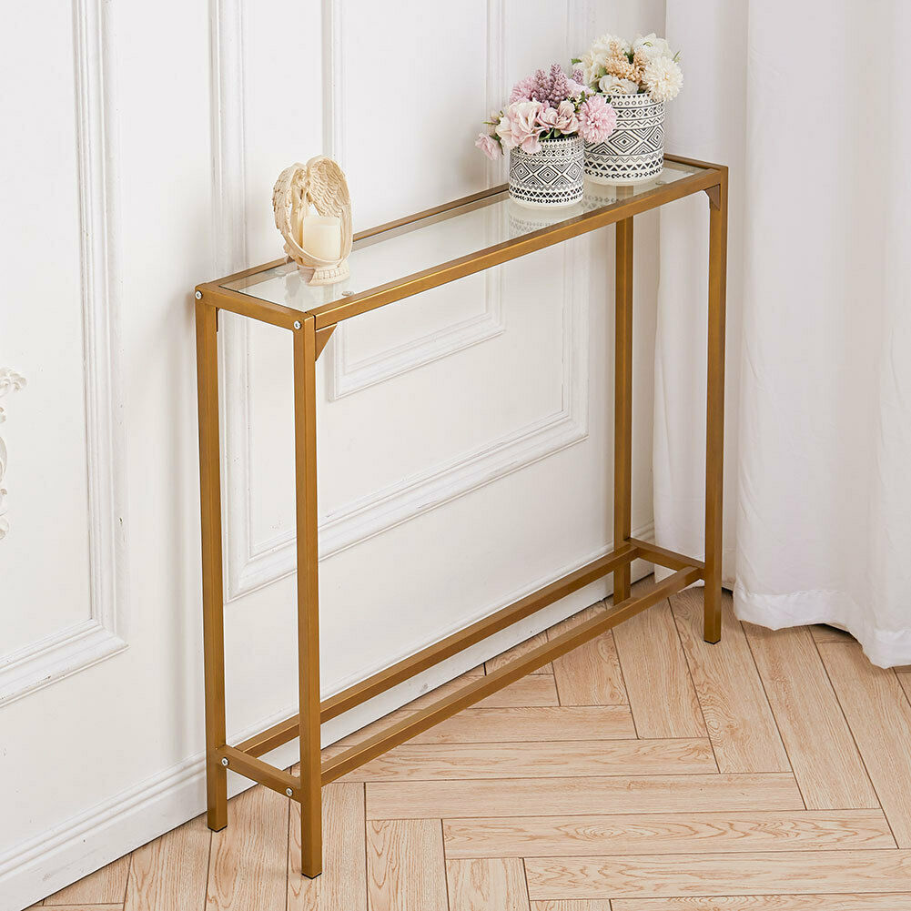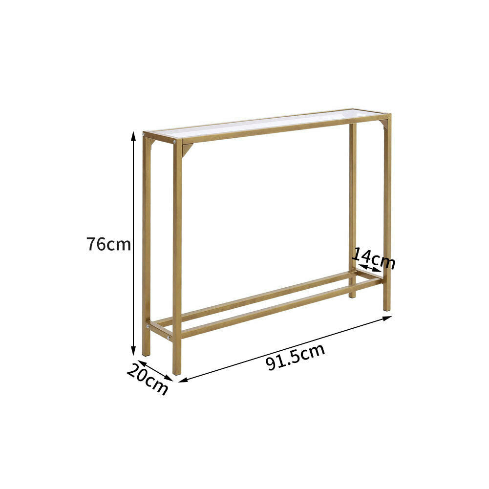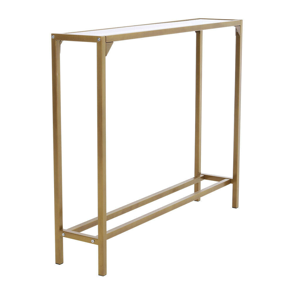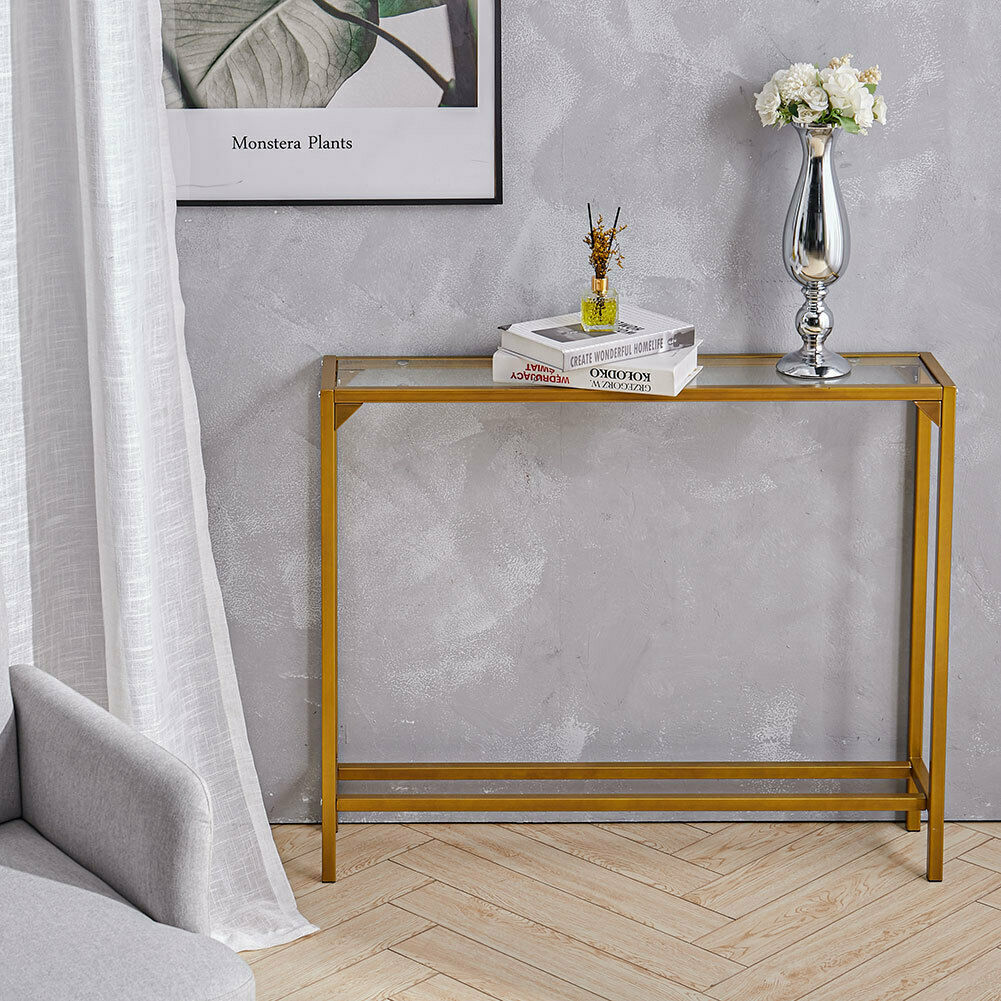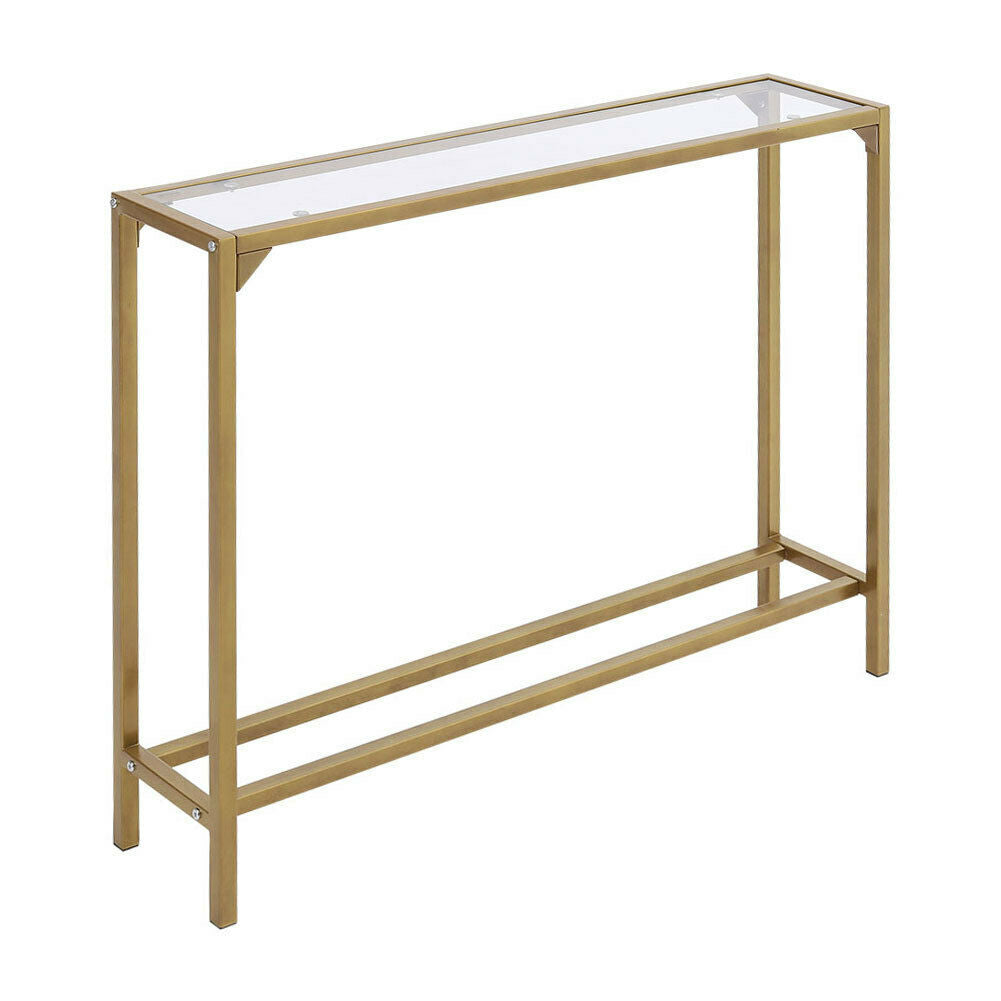 2-Tier Console Table Glass Hall Desk Side End Table W/ Bottom Shelf Gold Frame