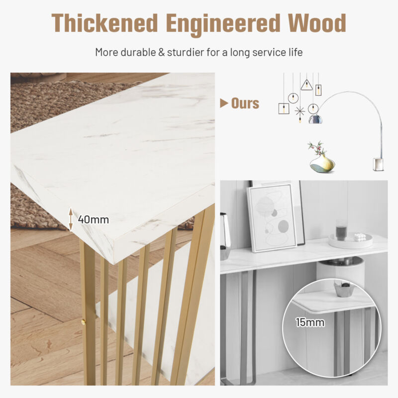 2-tier Console Table White Faux Marble Sofa Table Modern Entryway Table Hallway