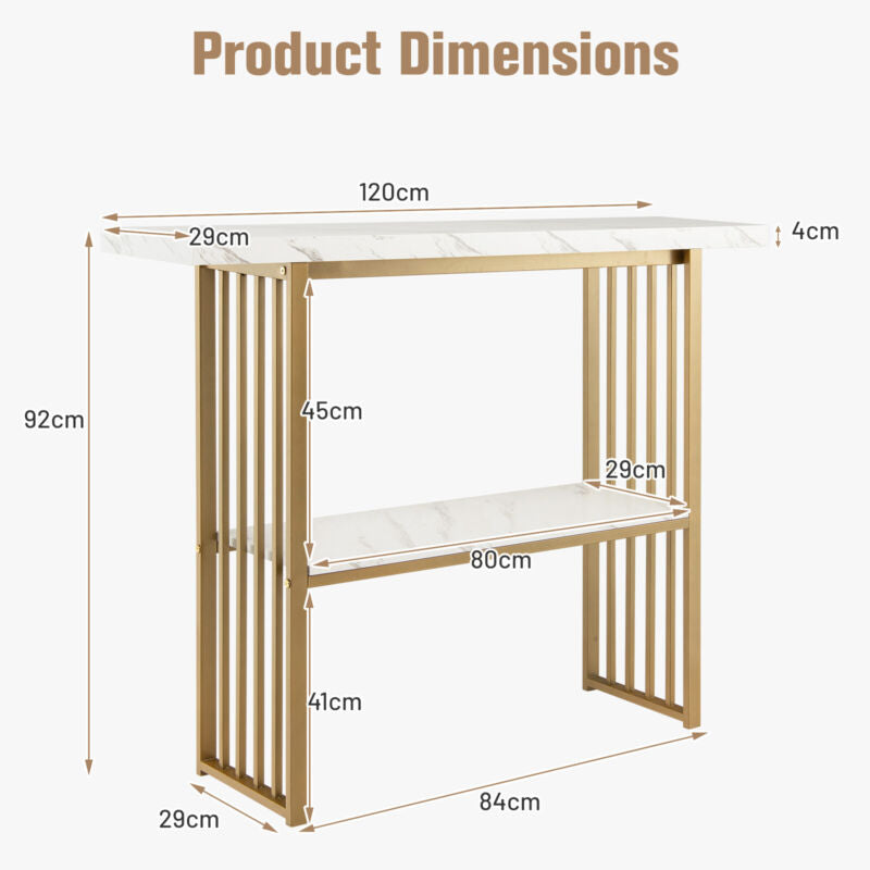 2-tier Console Table White Faux Marble Sofa Table Modern Entryway Table Hallway
