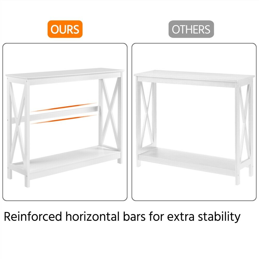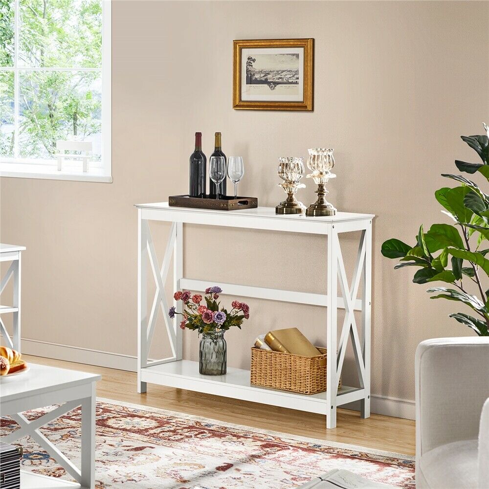 2-Tier Console Table X-Shaped Narrow Entryway Storage Shelves Side Table White