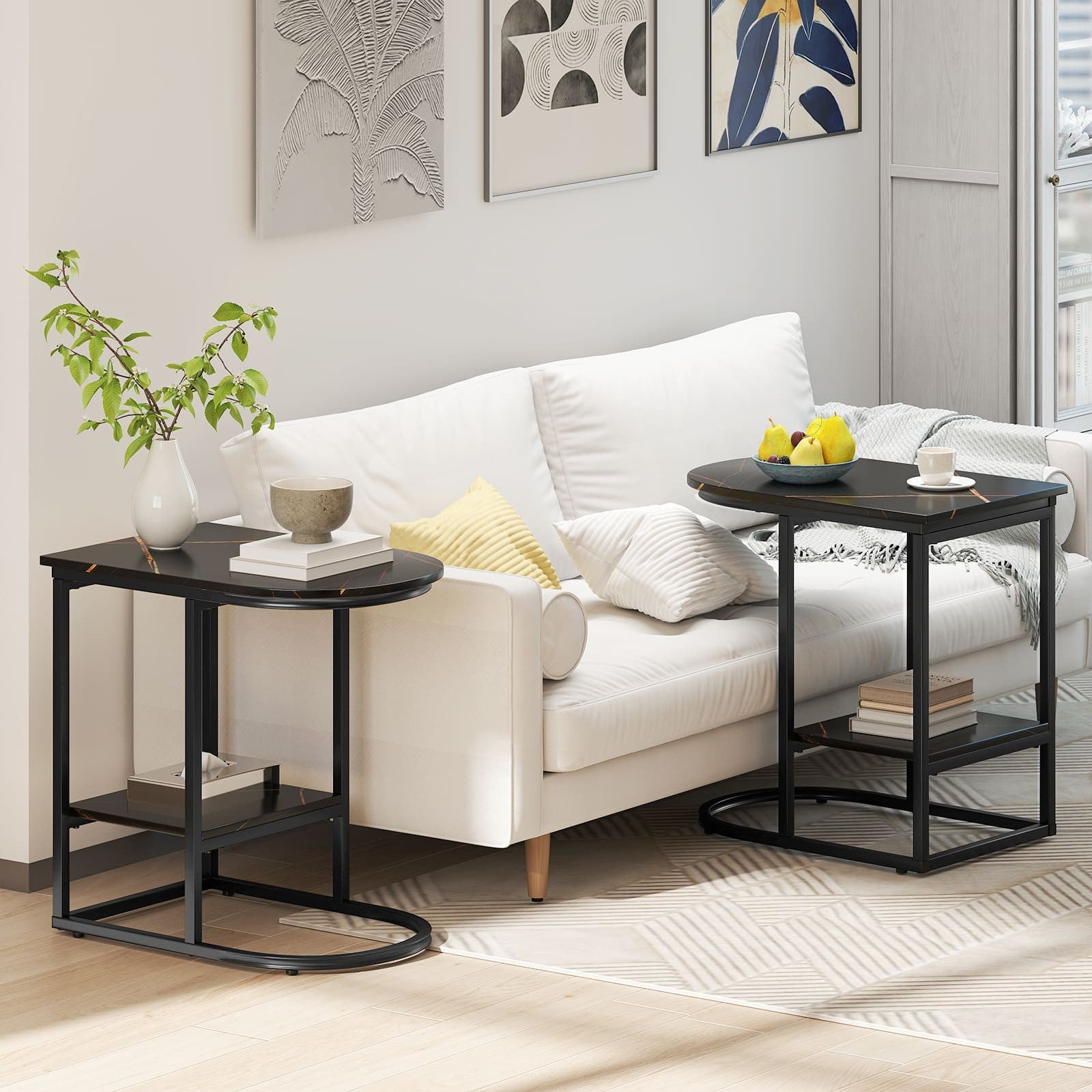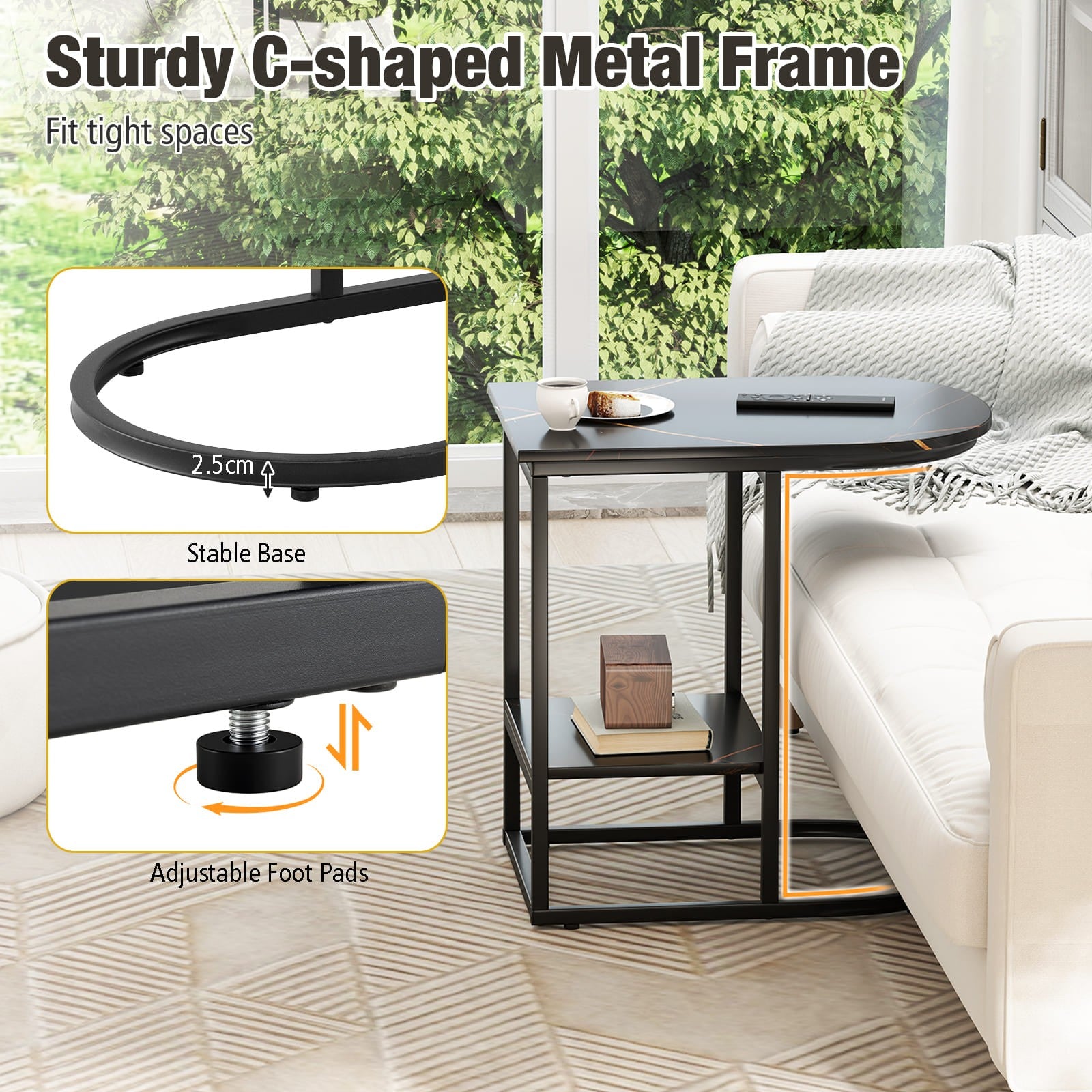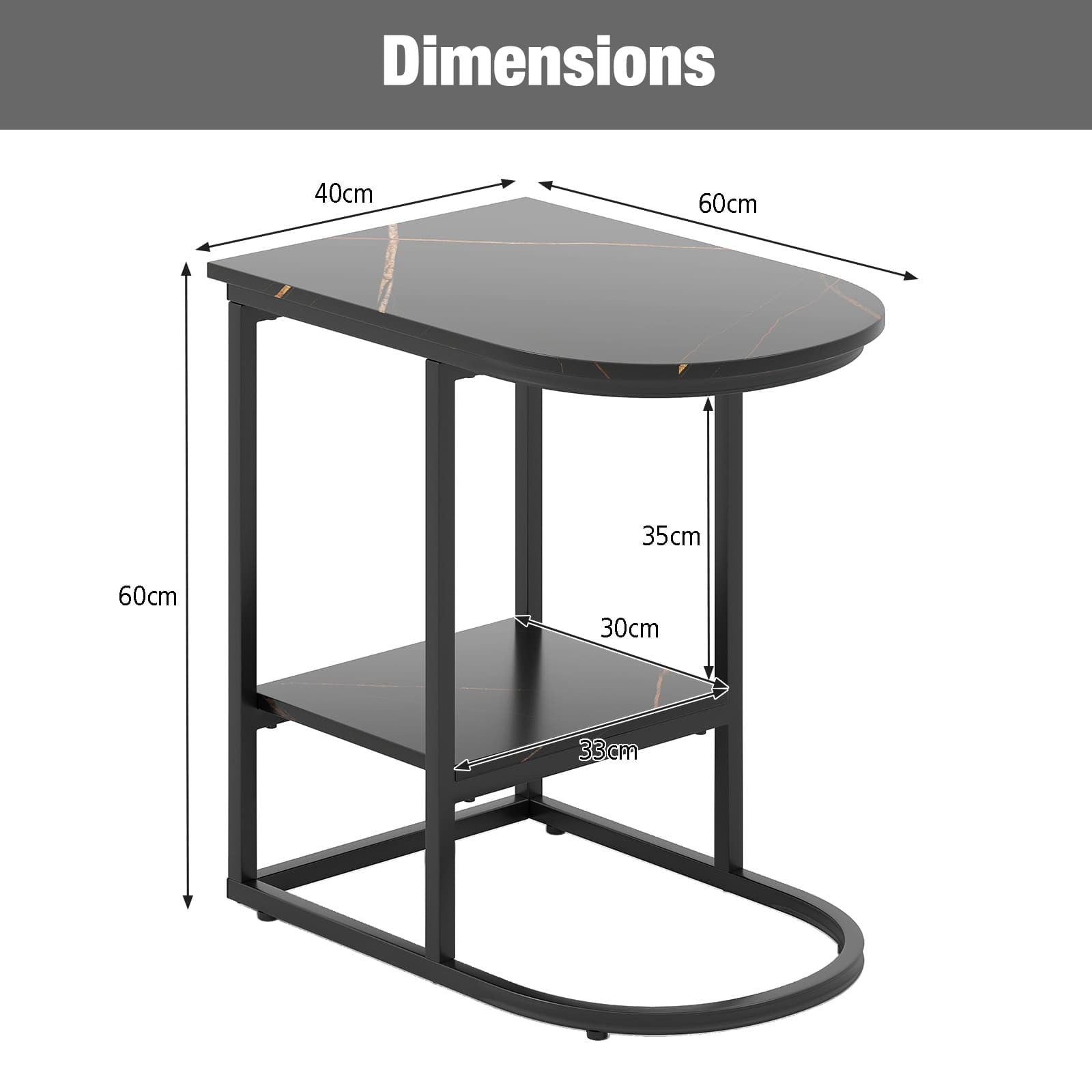 2-Tier Couch Table C-shaped End Table with Storage Shelf-Black