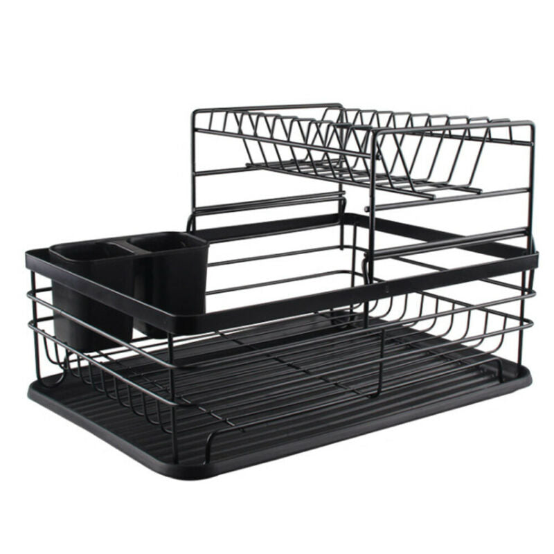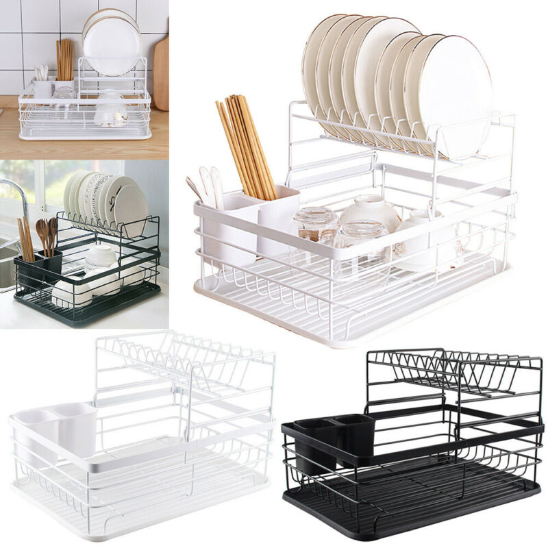 2 Tier Dish Drainer Rack Kitchen Counter Plates Bowls Utensil Draining Holder