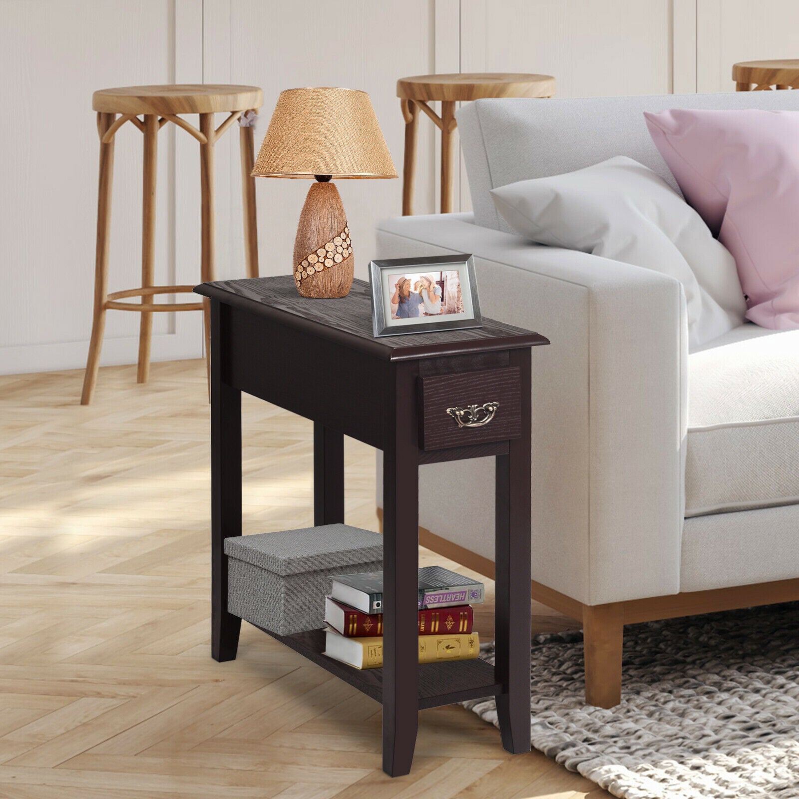2-Tier End Table W/ Drawer & Double Shelves Narrow Tiered Nightstand for Bedroom