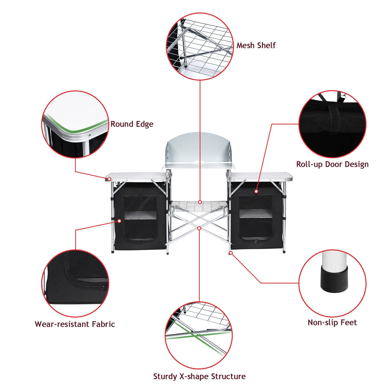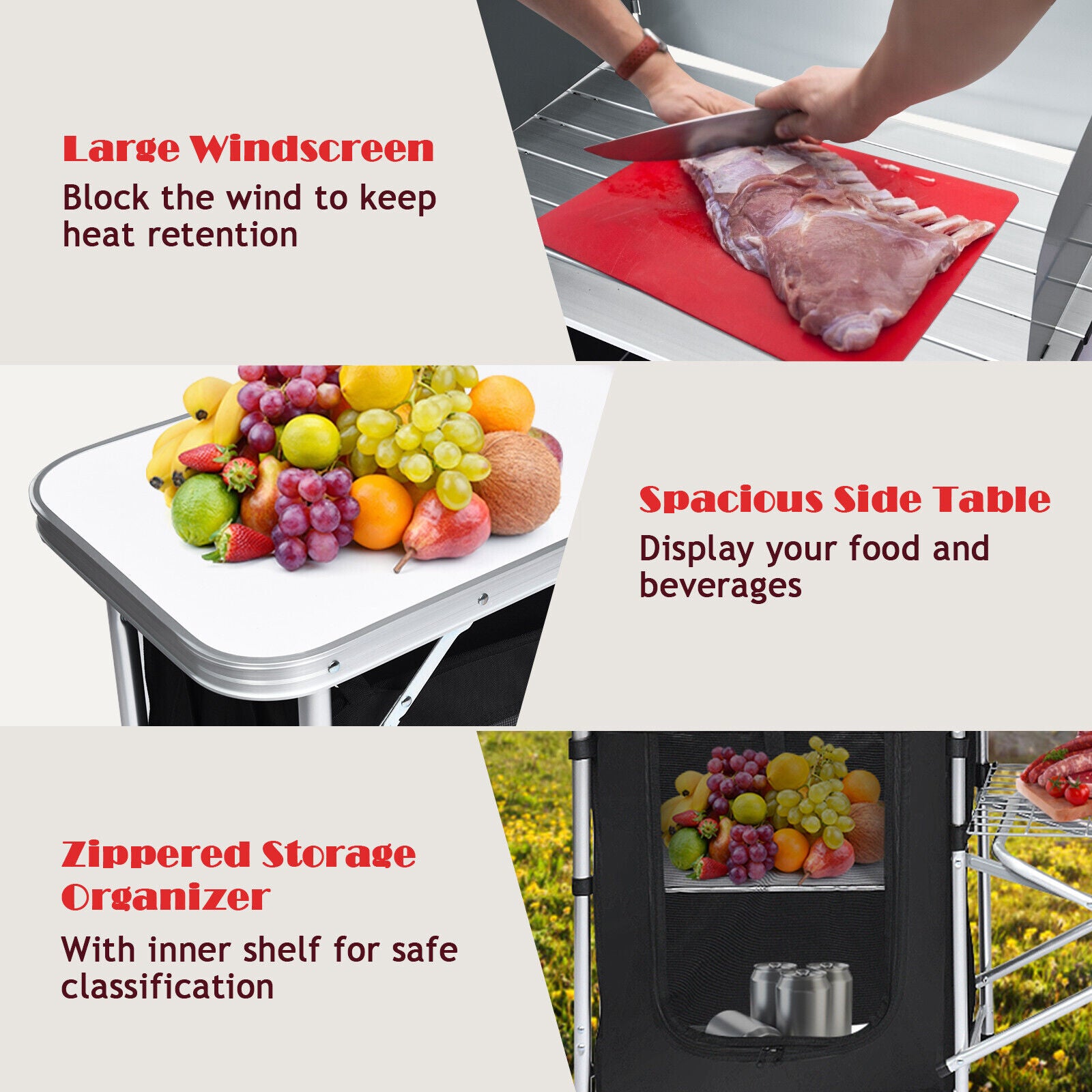 2-Tier Folding Camping Table Portable Kitchen Cook Station Aluminum Grill Table