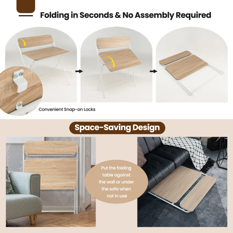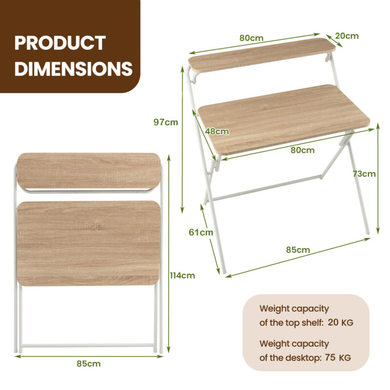 2-Tier Folding Table Modern Computer Desk Space-Saving Writing Workstation