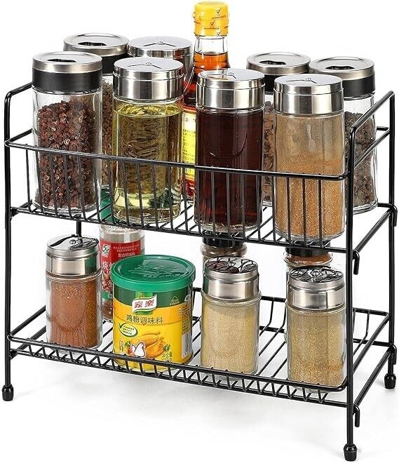 2 Tier Free Standing Spice Rack Storage Organiser Holder Perfect for Spice Jars