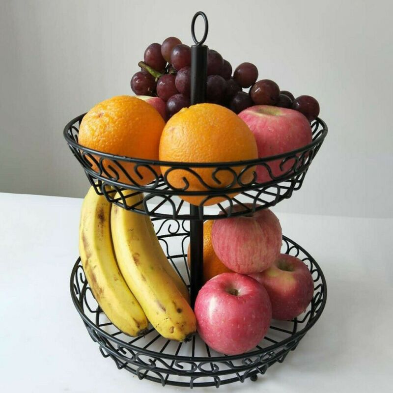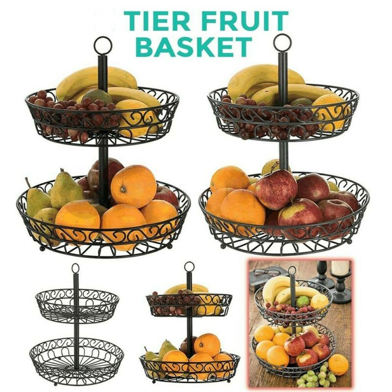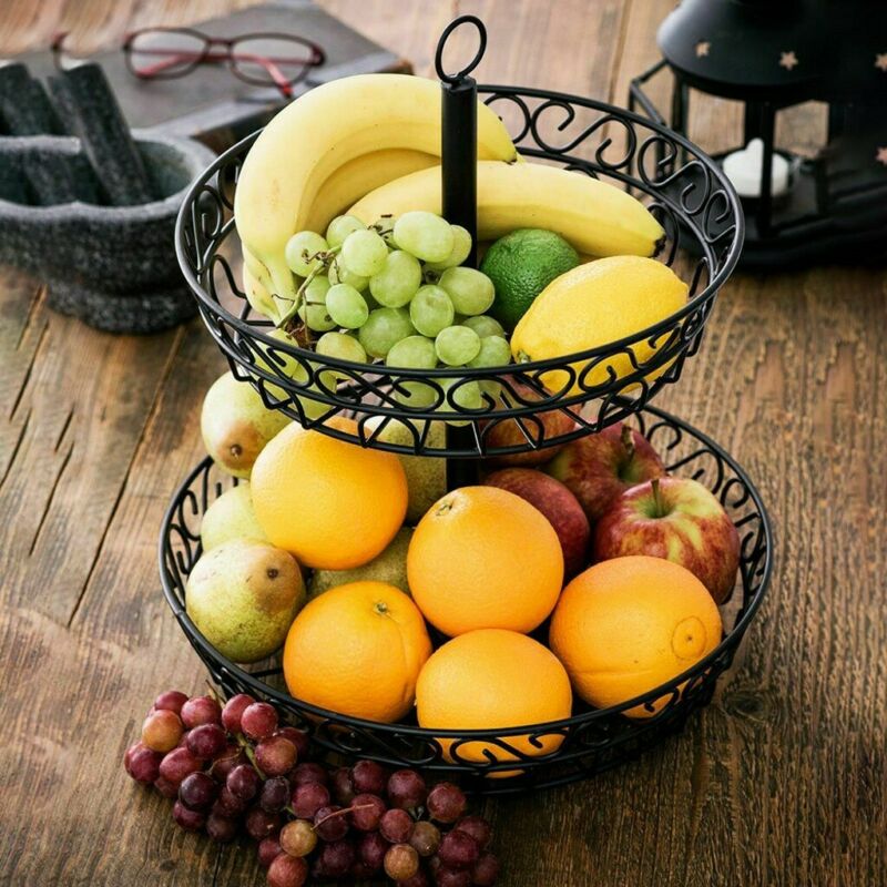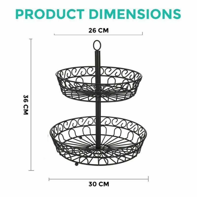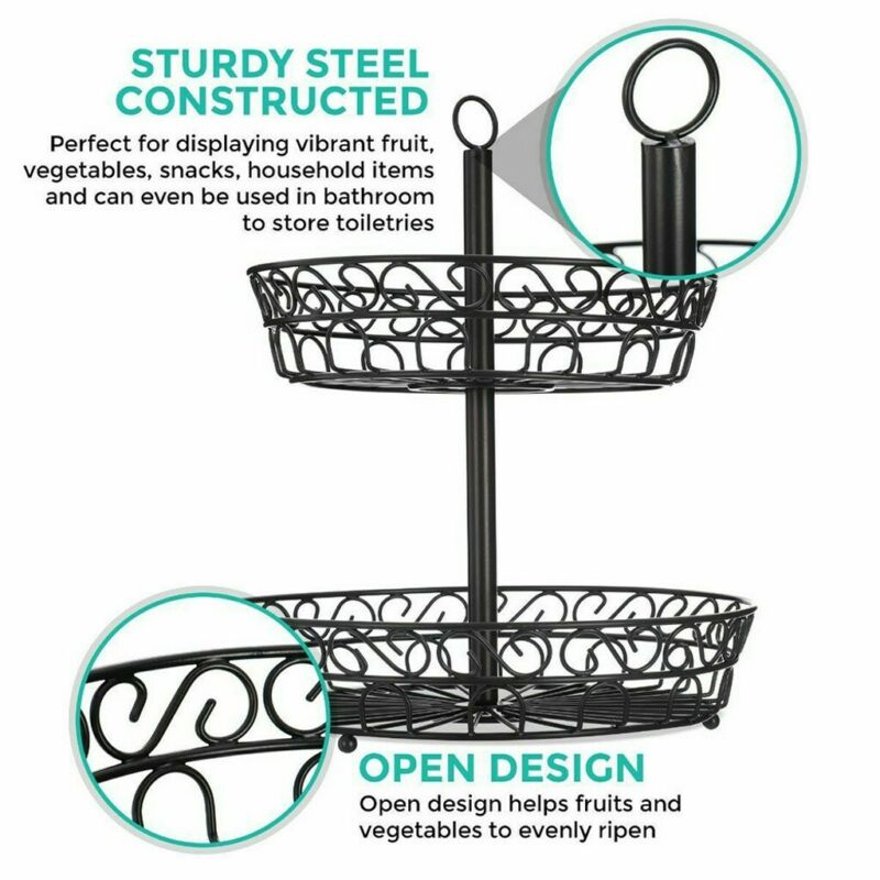 2 Tier Fruit Basket Holder Rack Vegetable Bowl Storage Stand Black Tableware
