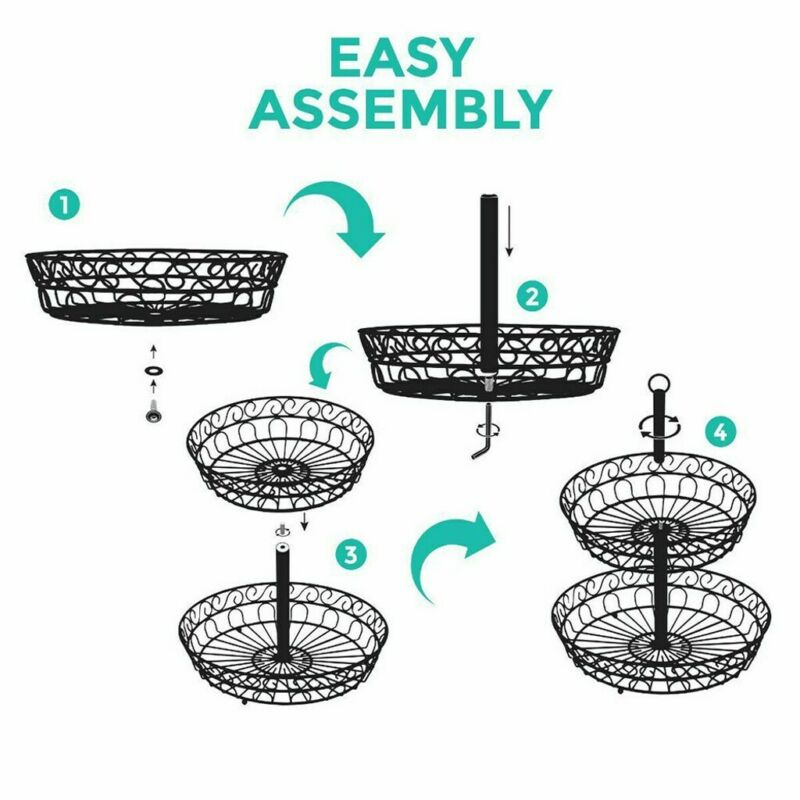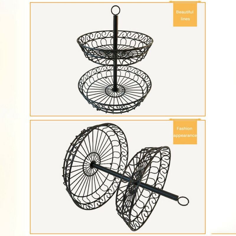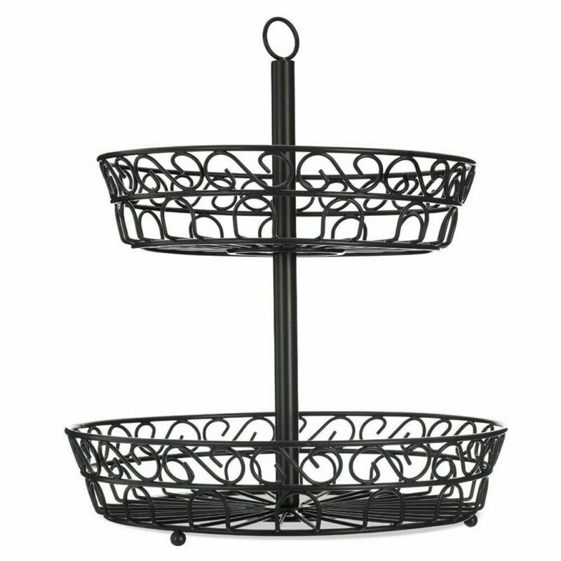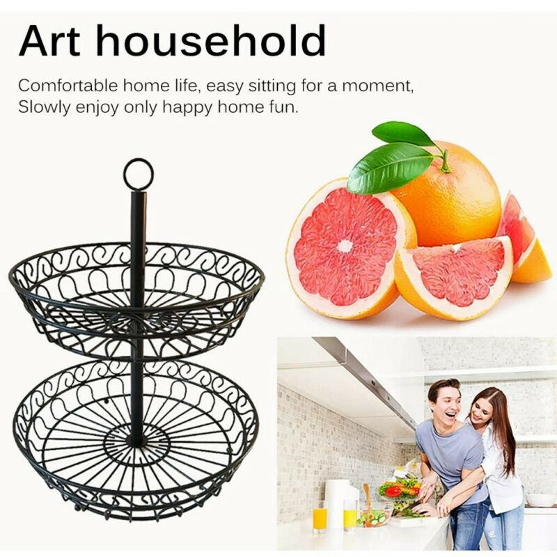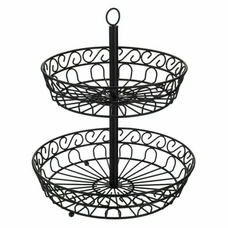 2 Tier Fruit Basket Holder Rack Vegetable Bowl Storage Stand Black Tableware