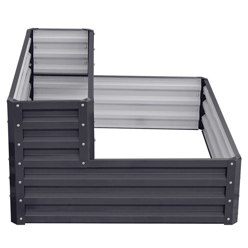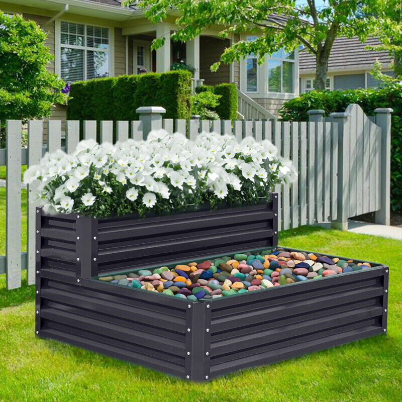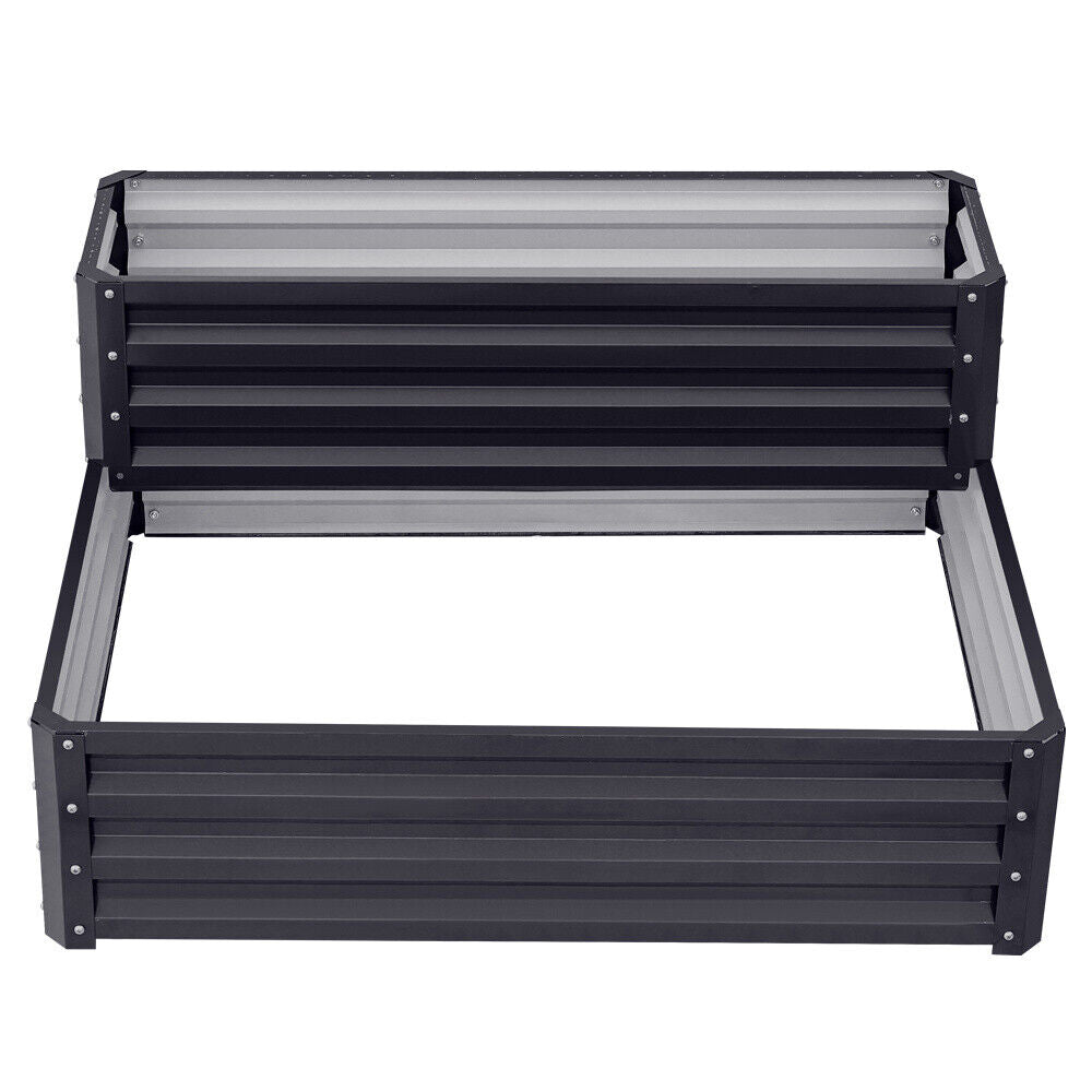 2 Tier Garden Metal Black Planter Flower Raised Bed Herb Grow Box Container