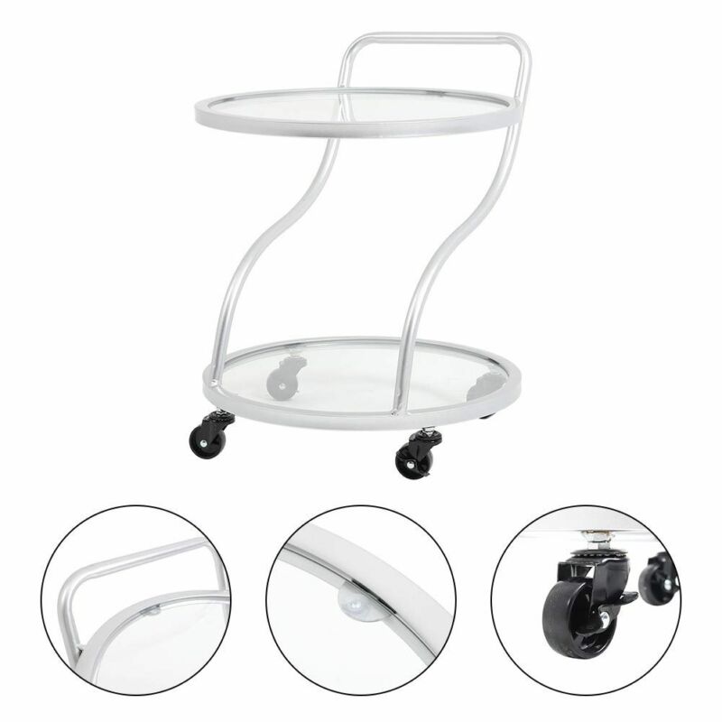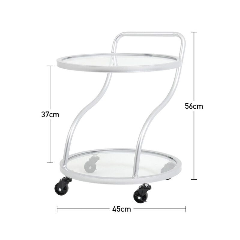 2 Tier Glass Drinks Trolley Dining Tea Serving Cart Bar Wine Rack Glass Shelving
