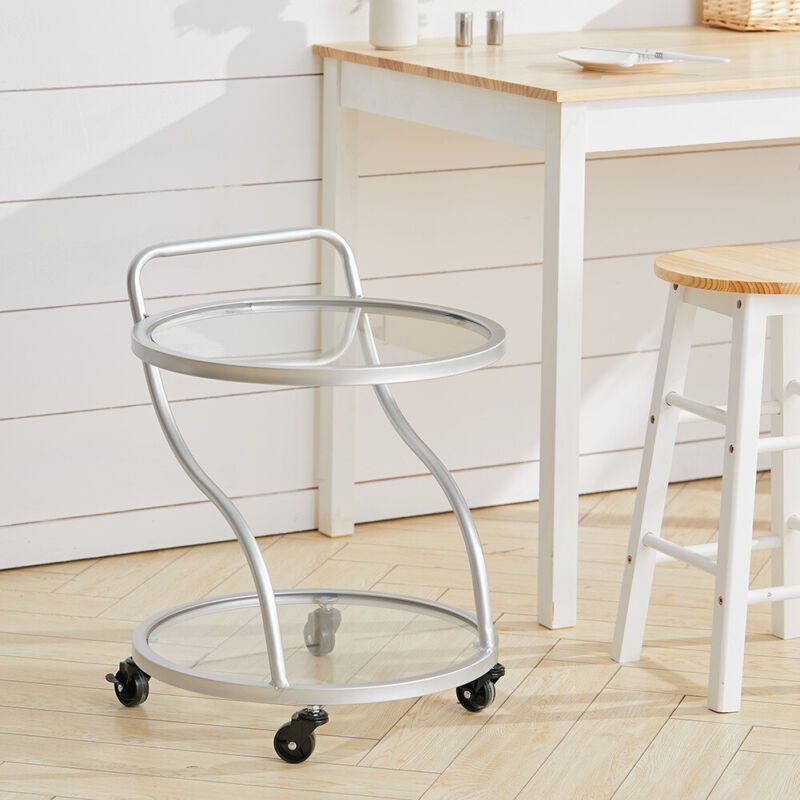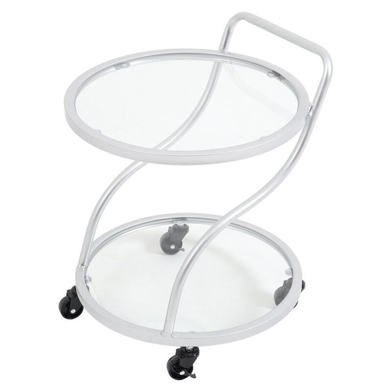 2 Tier Glass Drinks Trolley Dining Tea Serving Cart Bar Wine Rack Glass Shelving