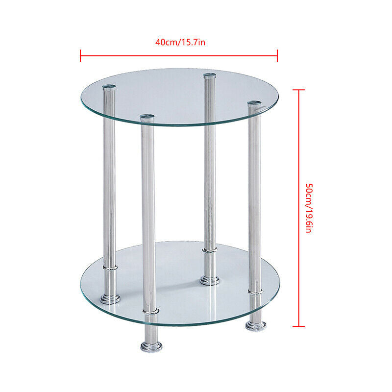 2 Tier Glass Side Table Sofa End Coffee Storage Shelf Living Room Black&Clear BN