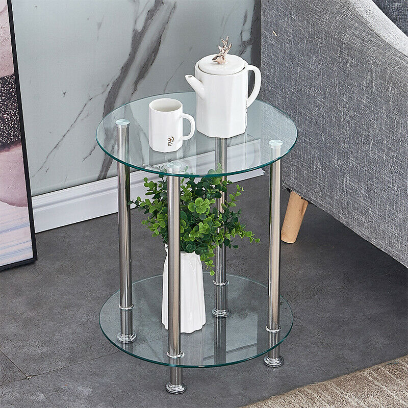 2 Tier Glass Side Table Sofa End Coffee Storage Shelf Living Room Round/Square