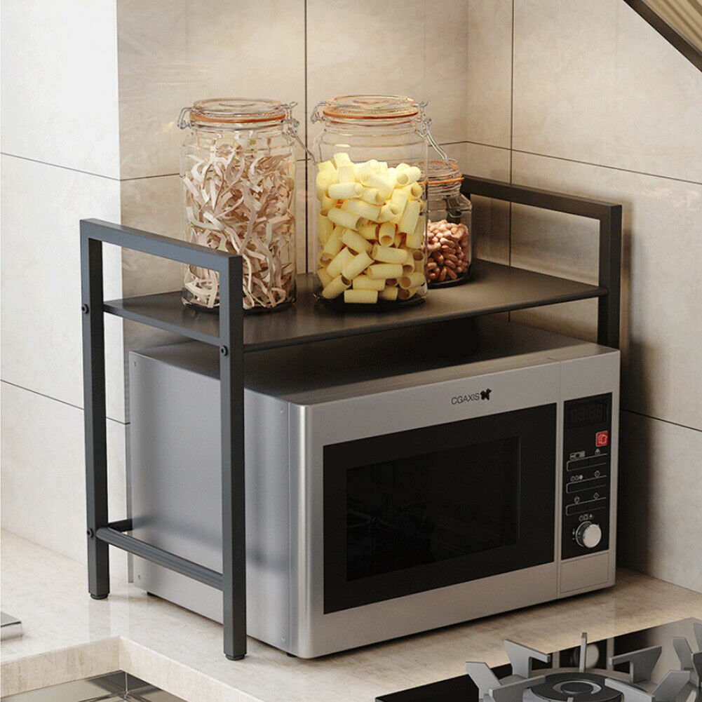 2 Tier Kitchen Microwave Oven Holder Rack Stand Iron Storage Organiser Shelf BLK