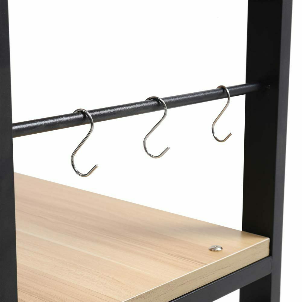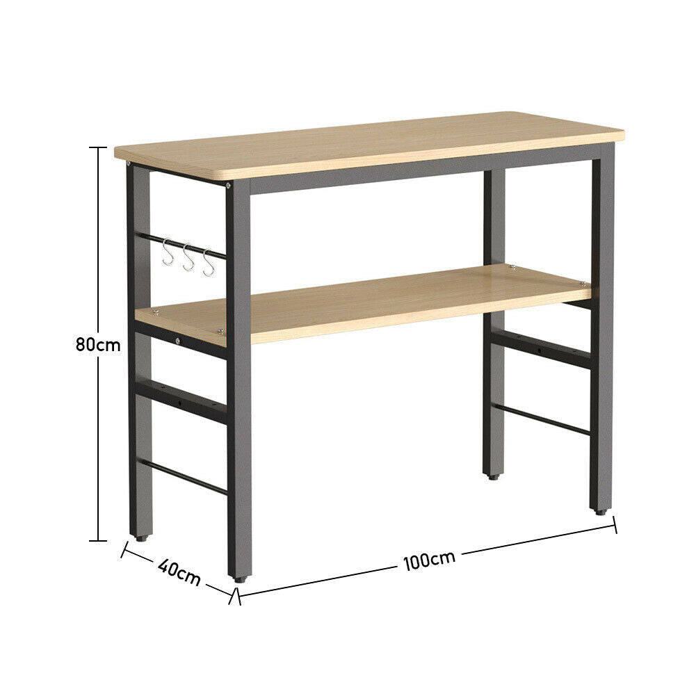 2 Tier Kitchen Side Table Shelf Microwave Oven Holder Food Prep Table with Hooks