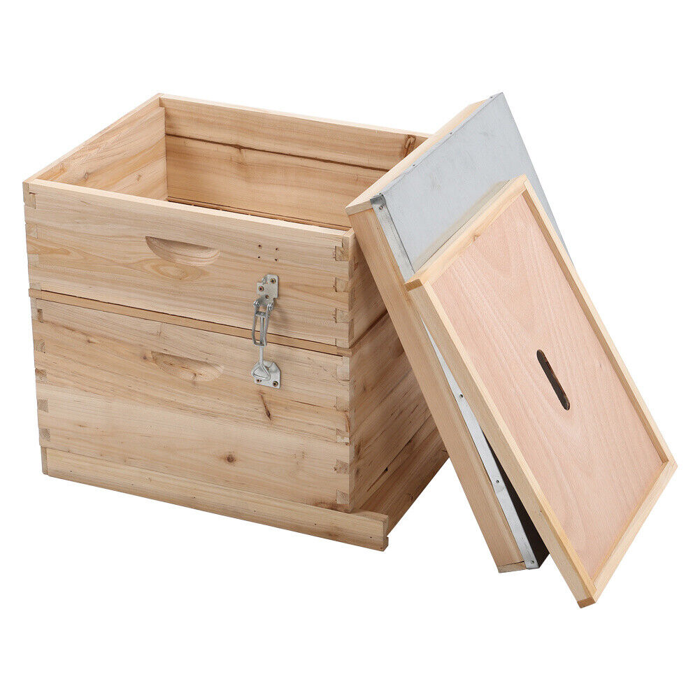 2 Tier Langstroth Beehive Box Beekeeping Honey Wooden Bee Hive Beekeeper Tool