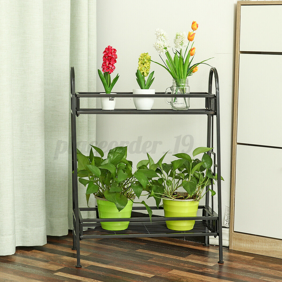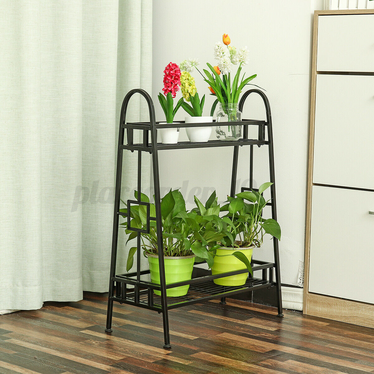 2 Tier Metal Planter Flower Stand Holder Display Rack Shelf Home Garden Outdoor