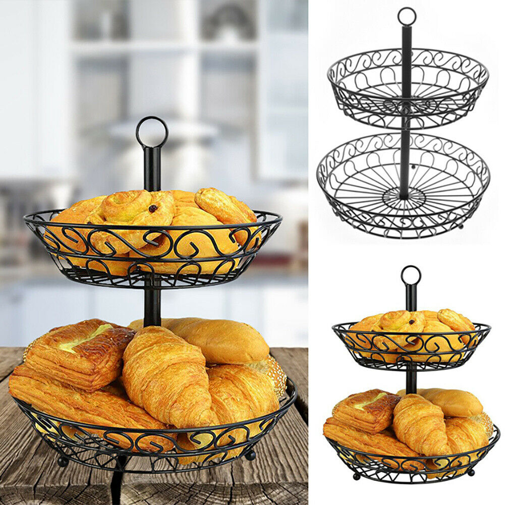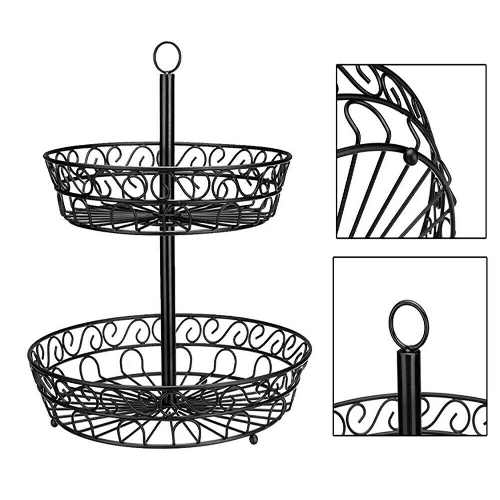 2 Tier Metal Wire Fruit Bowl Basket Storage Holder Stand Kitchen Vegetable Rack