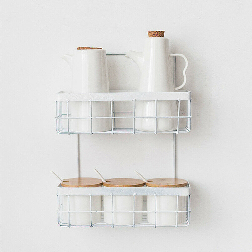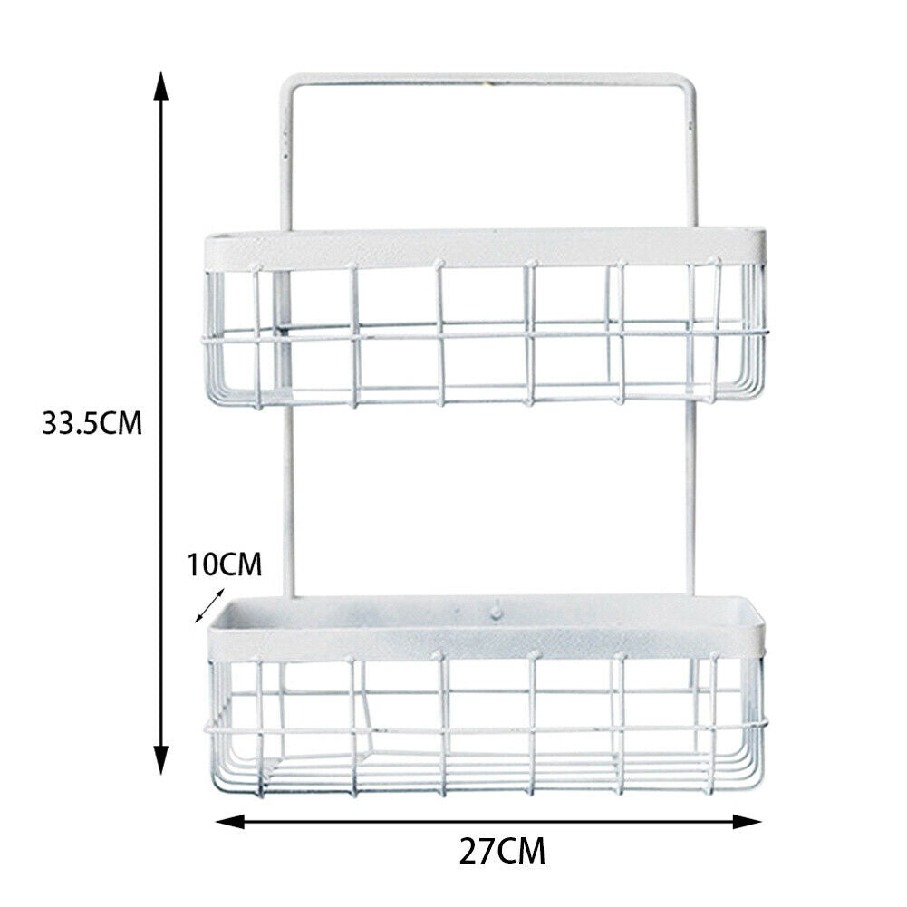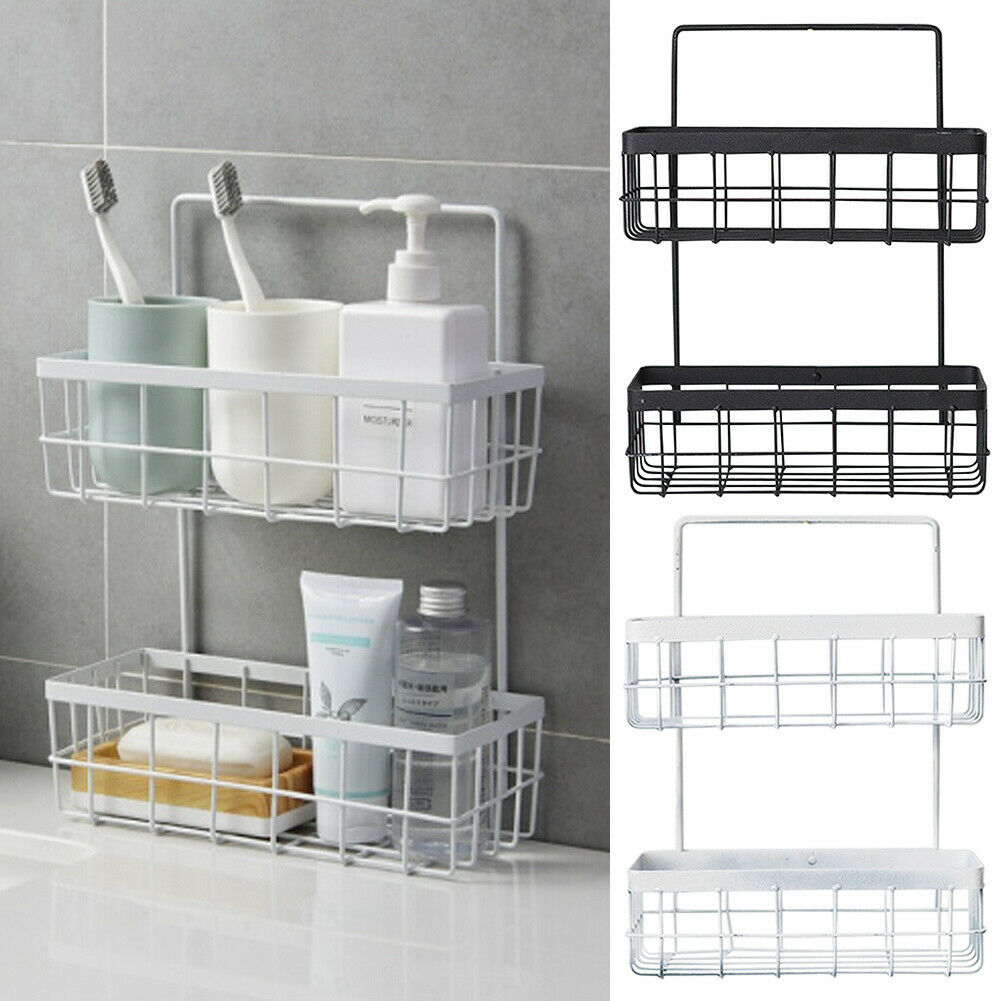 2 Tier Metal Wire Storage Basket Rack Wall Mounted Bathroom Shower Caddy Shelf