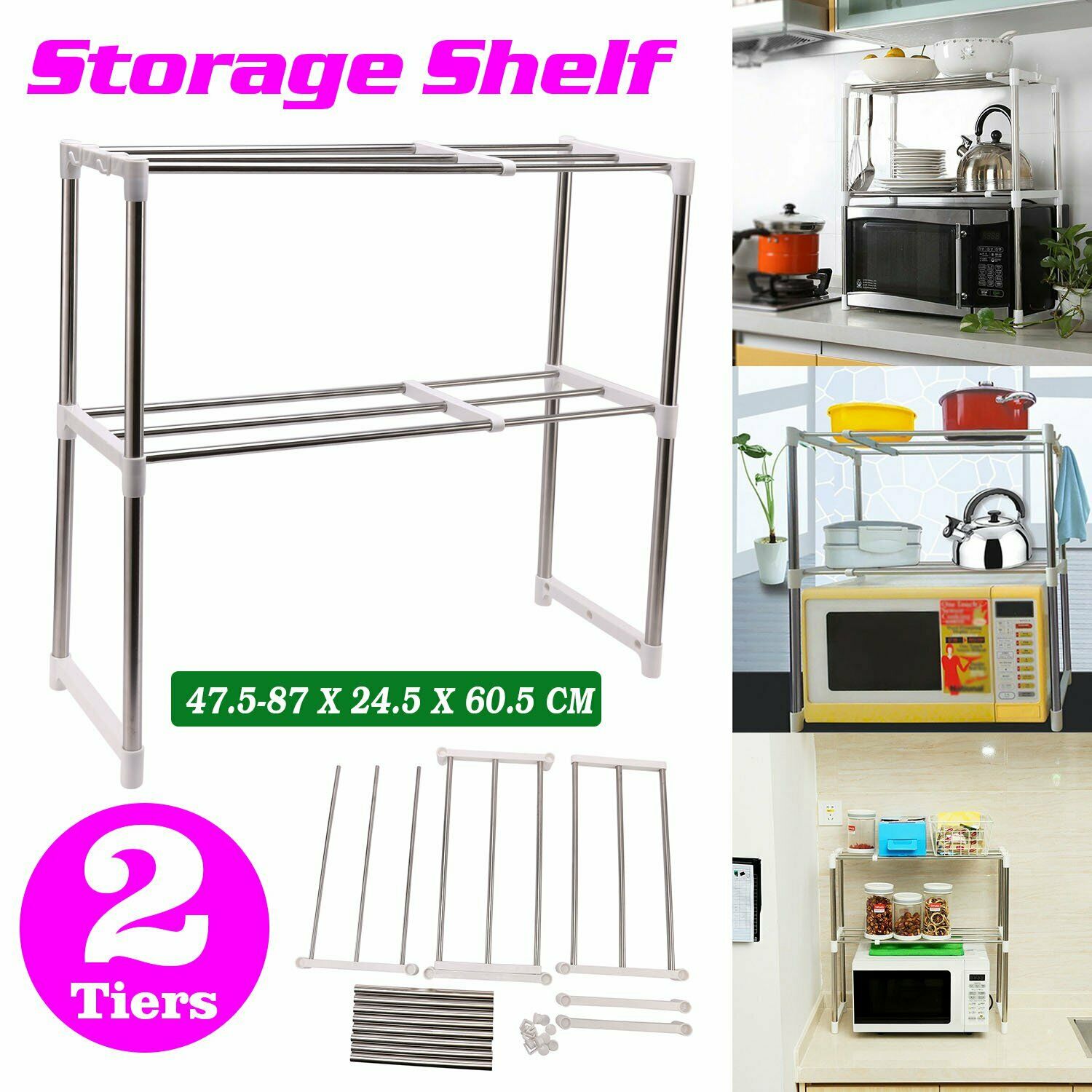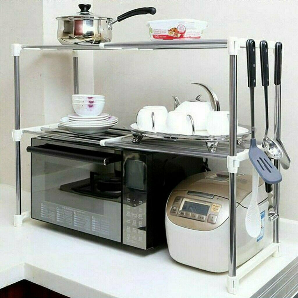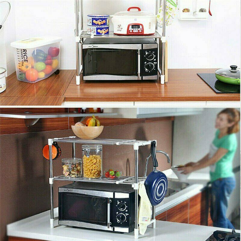2 Tier Microwave Oven Rack Holder Kitchen Tools Storage Stand Shelf Organiser