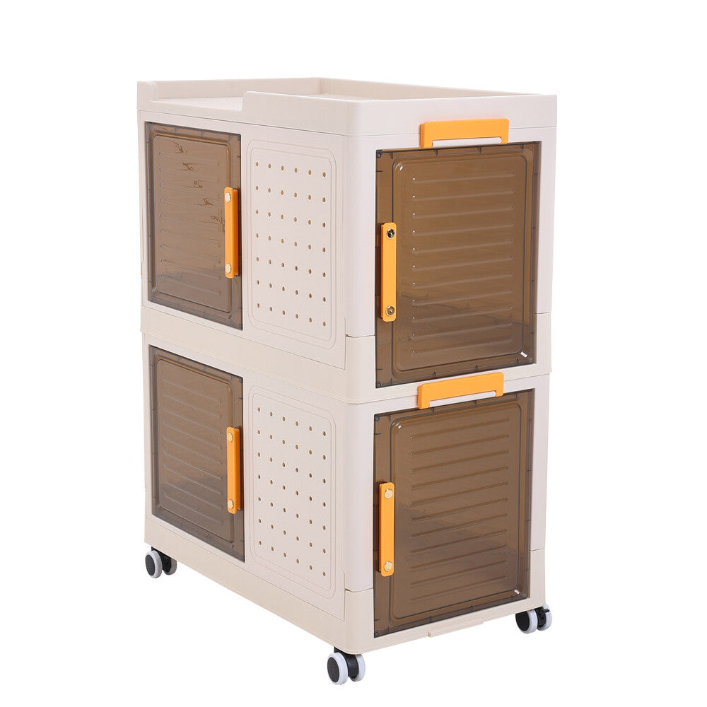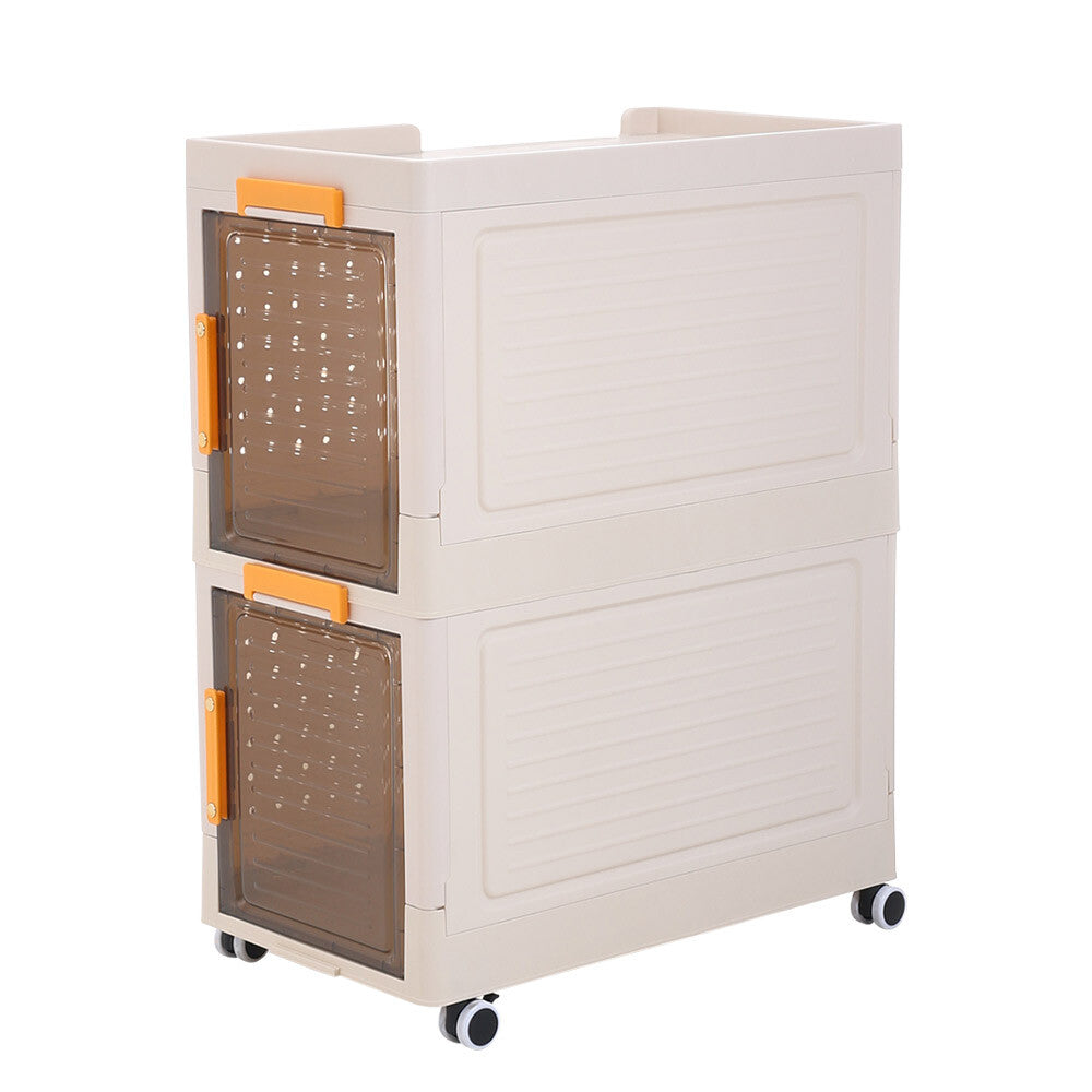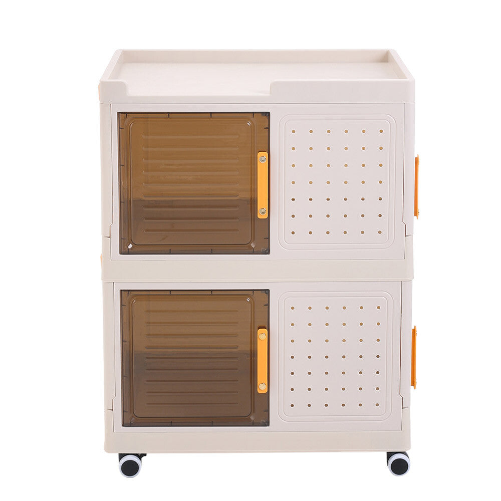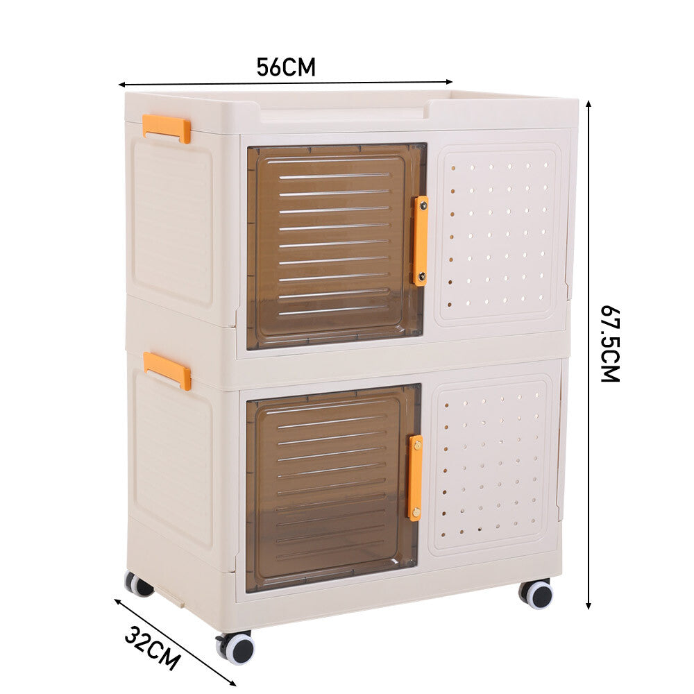 2 Tier Mobile Storage Box Bookcase Foldable Plastic Cabinet Home Organizer Box