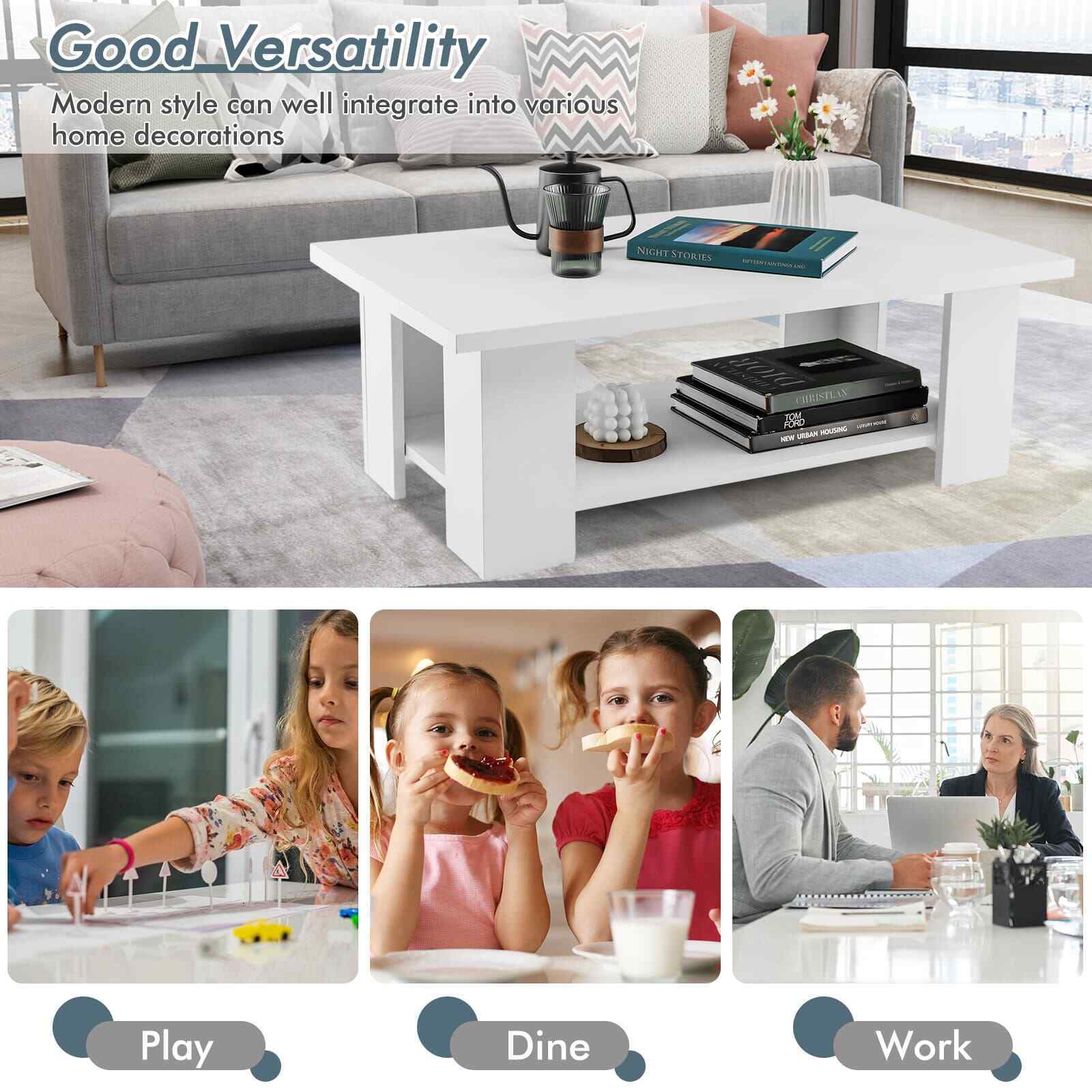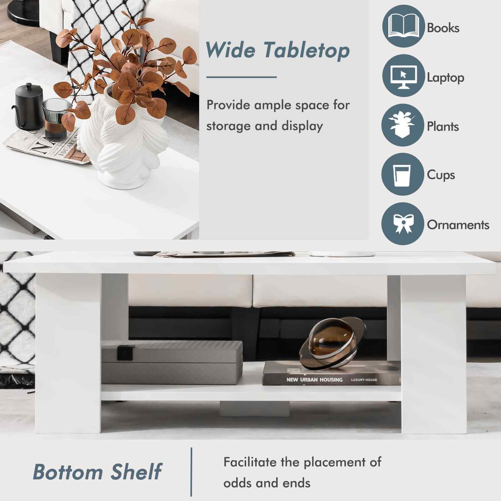 2-tier Modern Coffee Table Center Cocktail Table-White