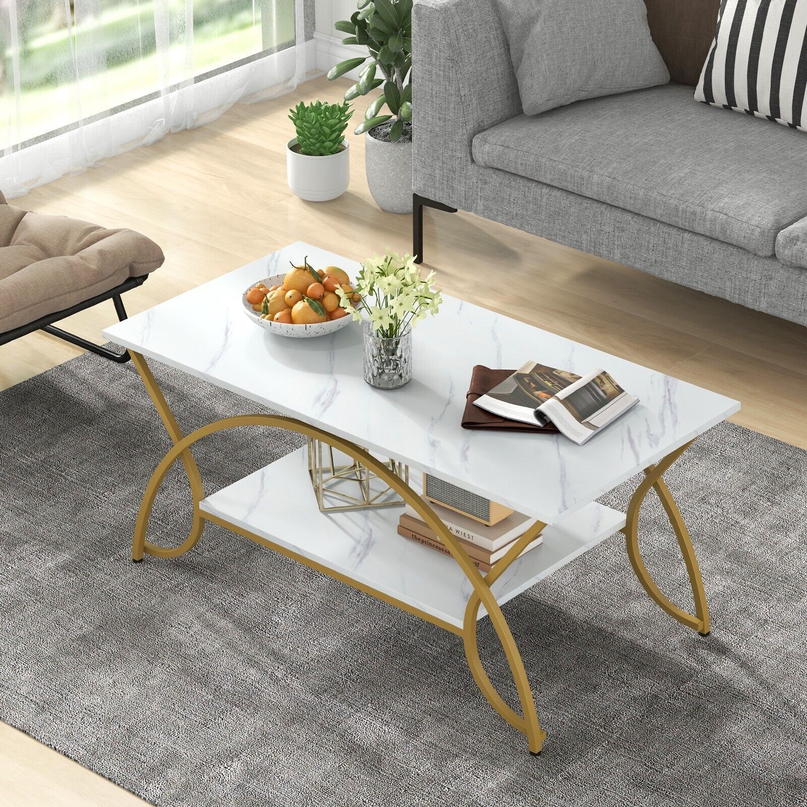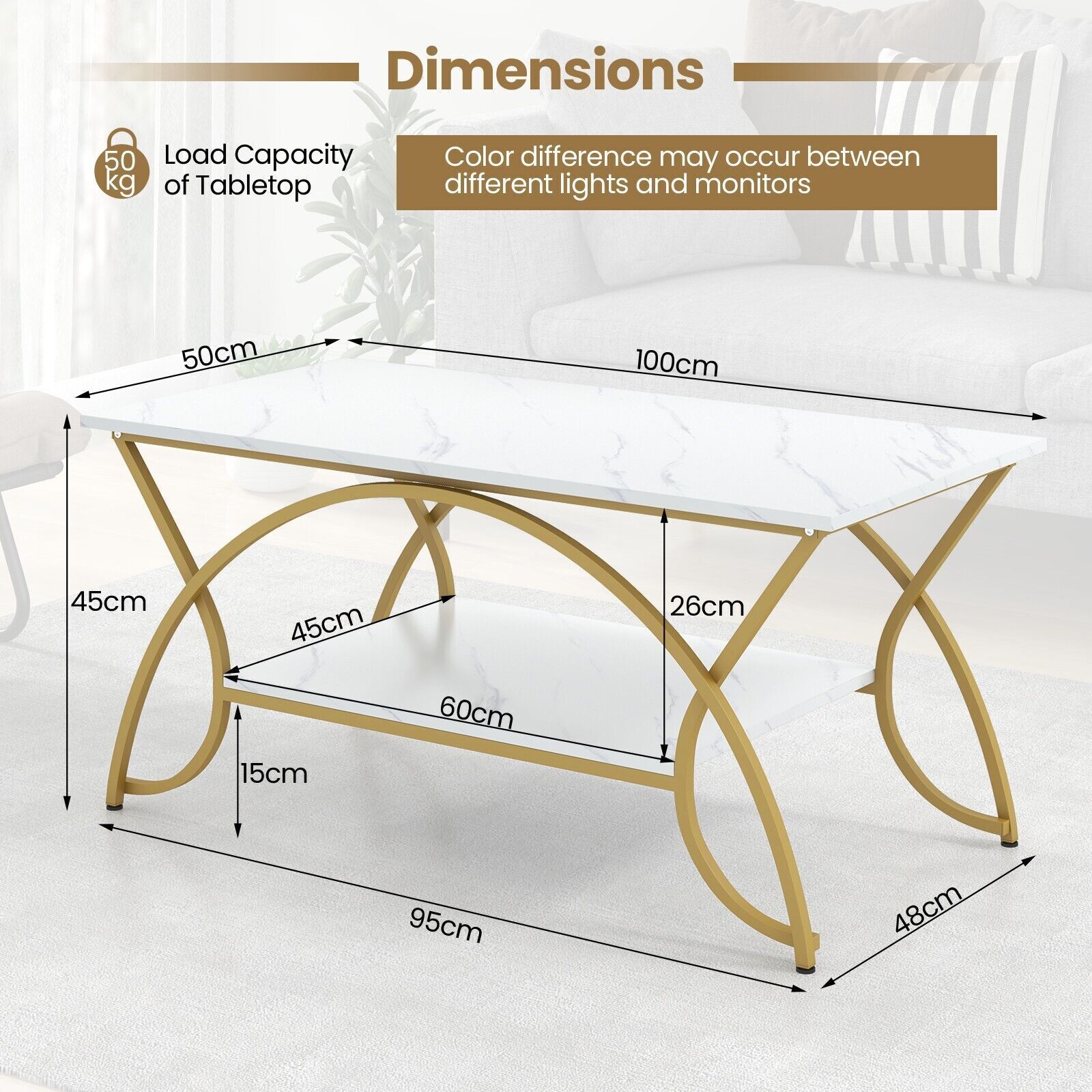 2-Tier Modern Coffee Table with Arched Metal Frame & Adjustable Foot Pads