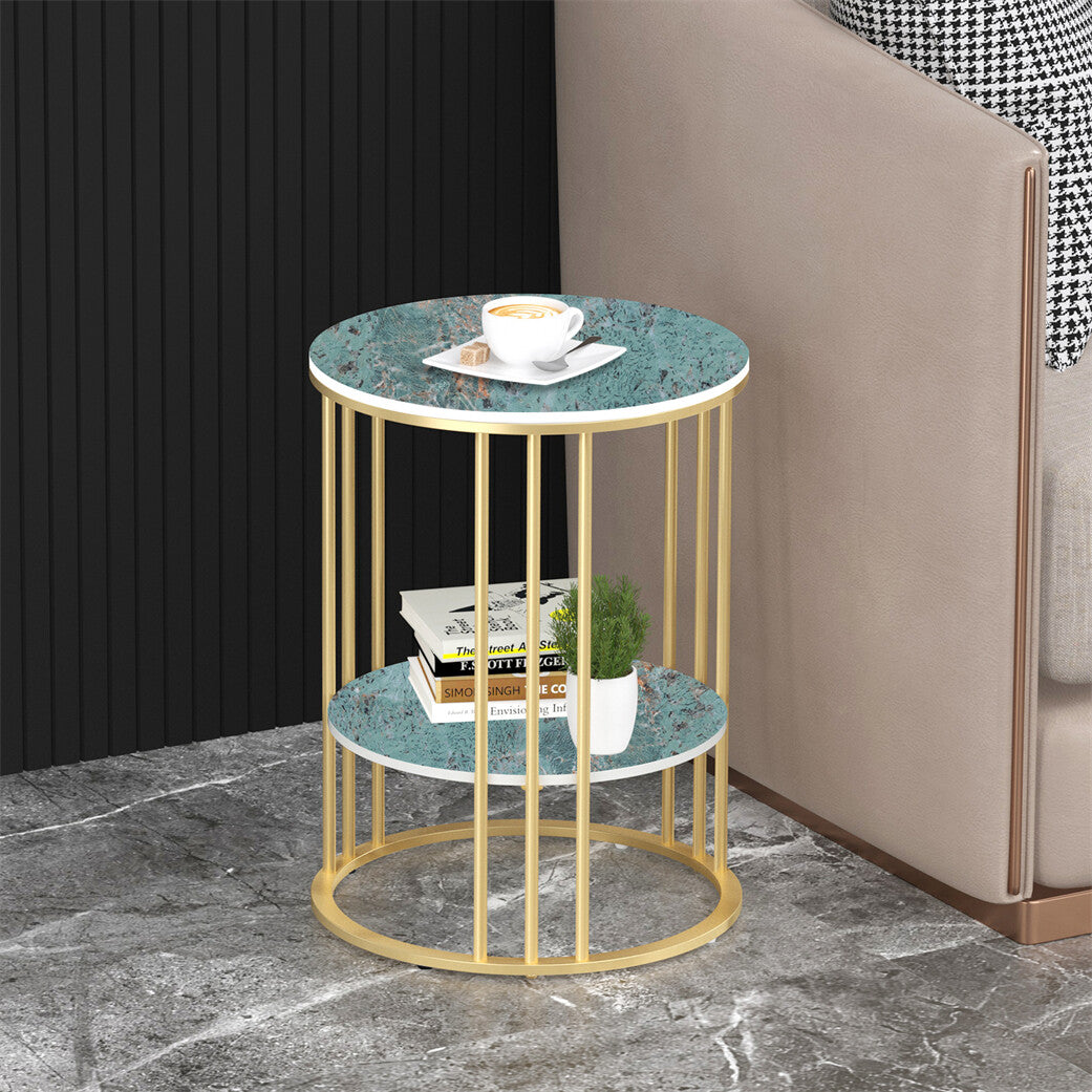 2-Tier Modern Round Coffee Table Sofa Side Table Emerald Green Marble Nightstand