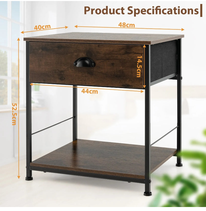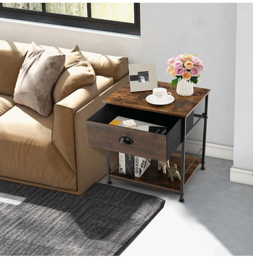 2-tier Nightstand Bedside End Sofa Coffee Table Beside Storage Table With Drawer