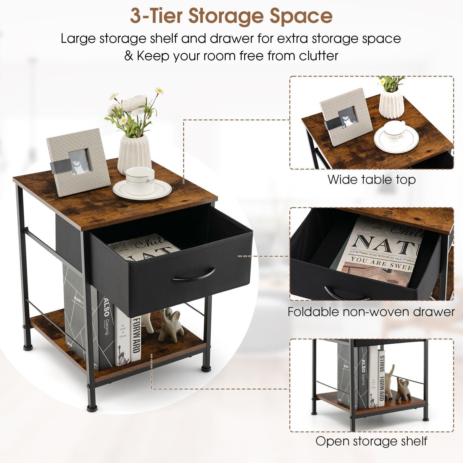 2-tier Nightstand Bedside End Sofa Coffee Table Beside Storage Table With Drawer