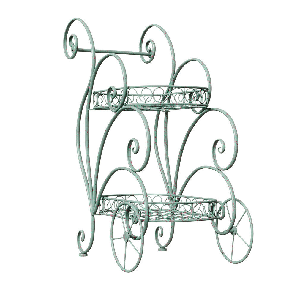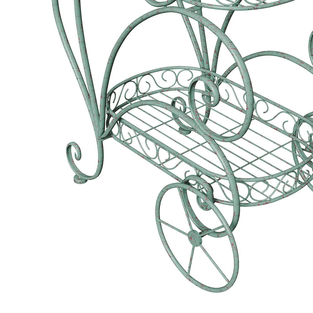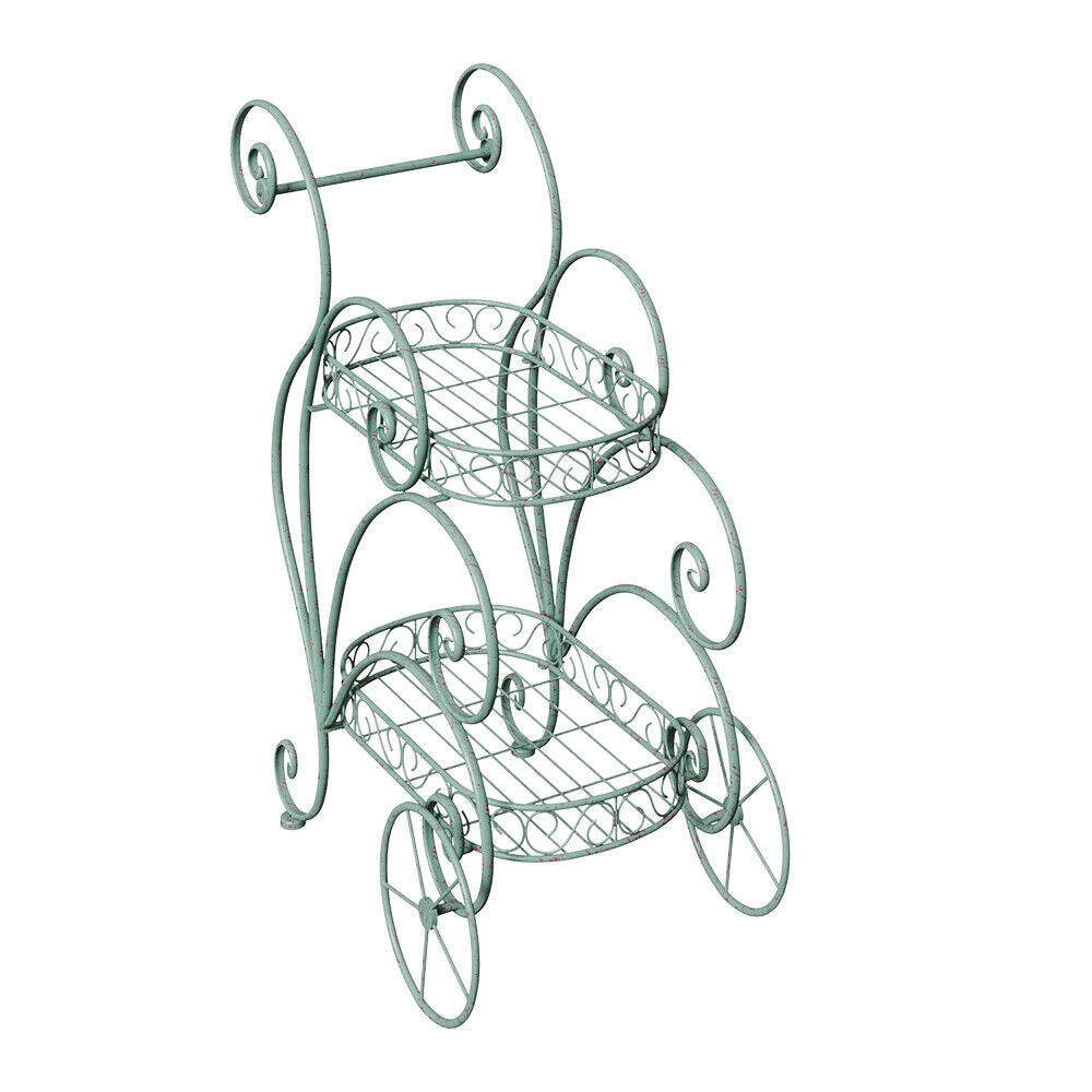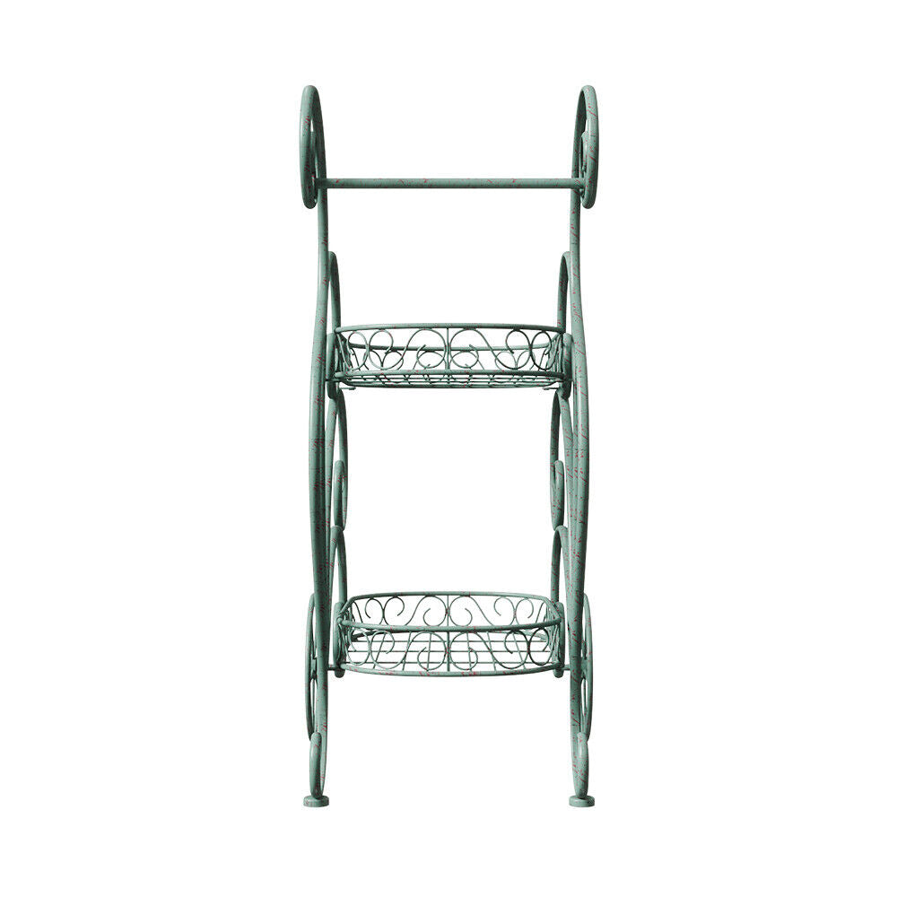 2 Tier Parisian Style Metal Garden Cart Plant Stand Flower Pot Display Decor