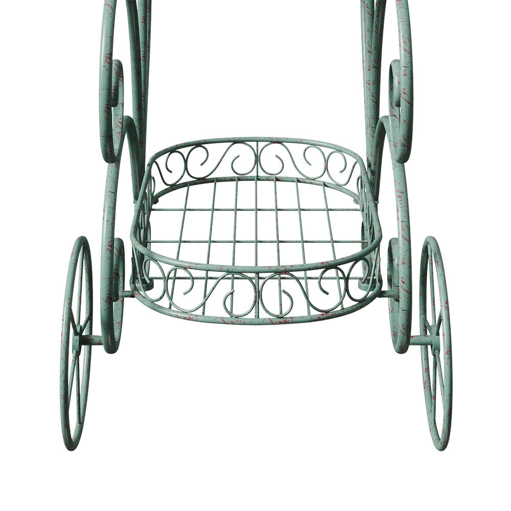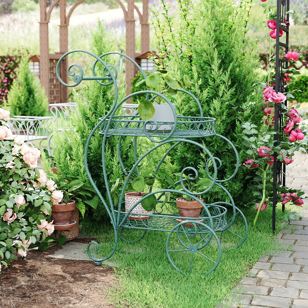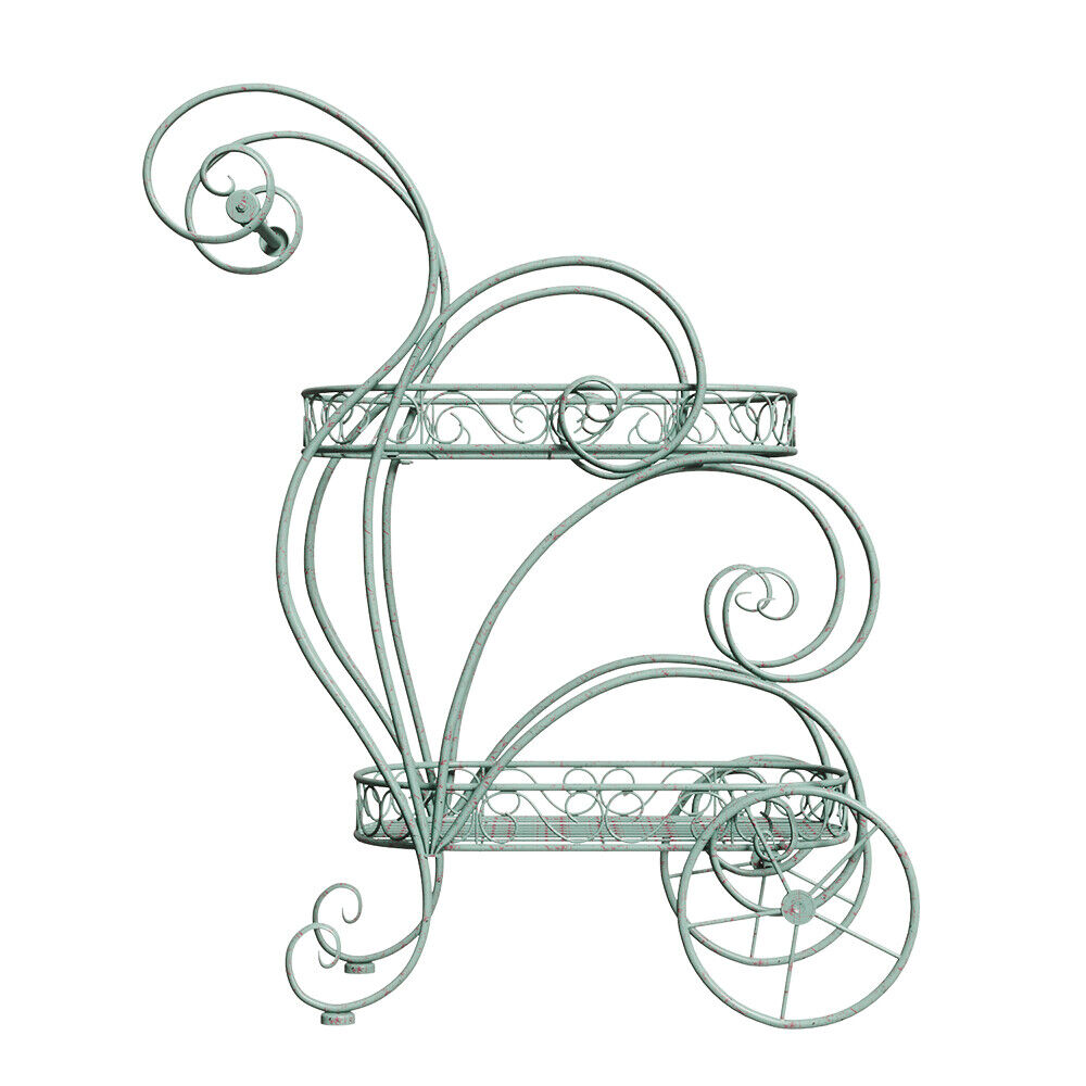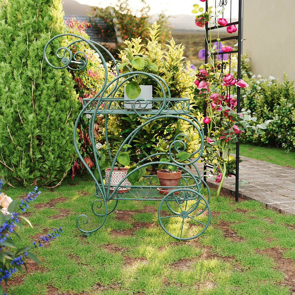 2 Tier Parisian Style Metal Garden Cart Plant Stand Flower Pot Display Decor